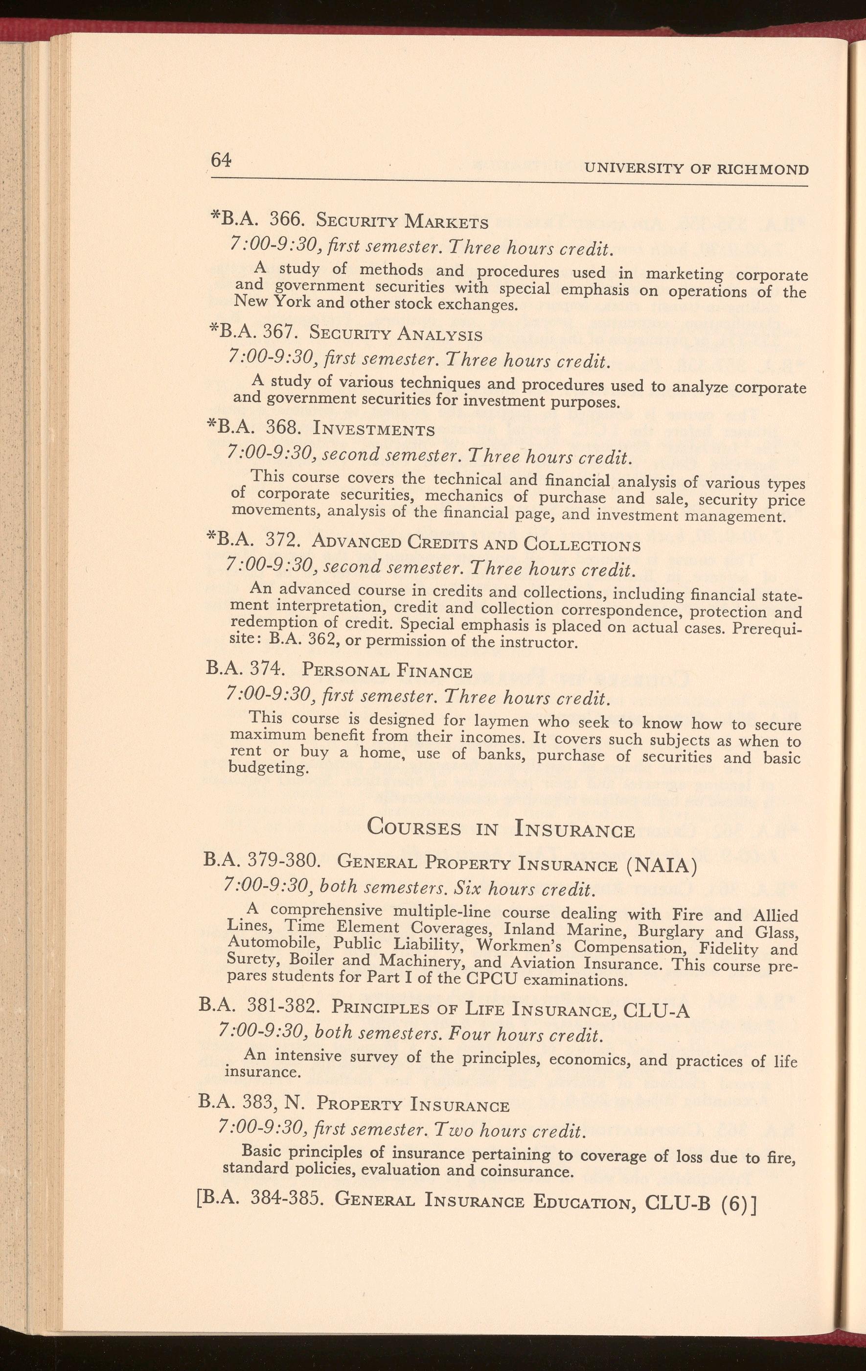 [B.A. 384-385. GENERAL INSURANCE EDUCATION, CLU-B (6)]