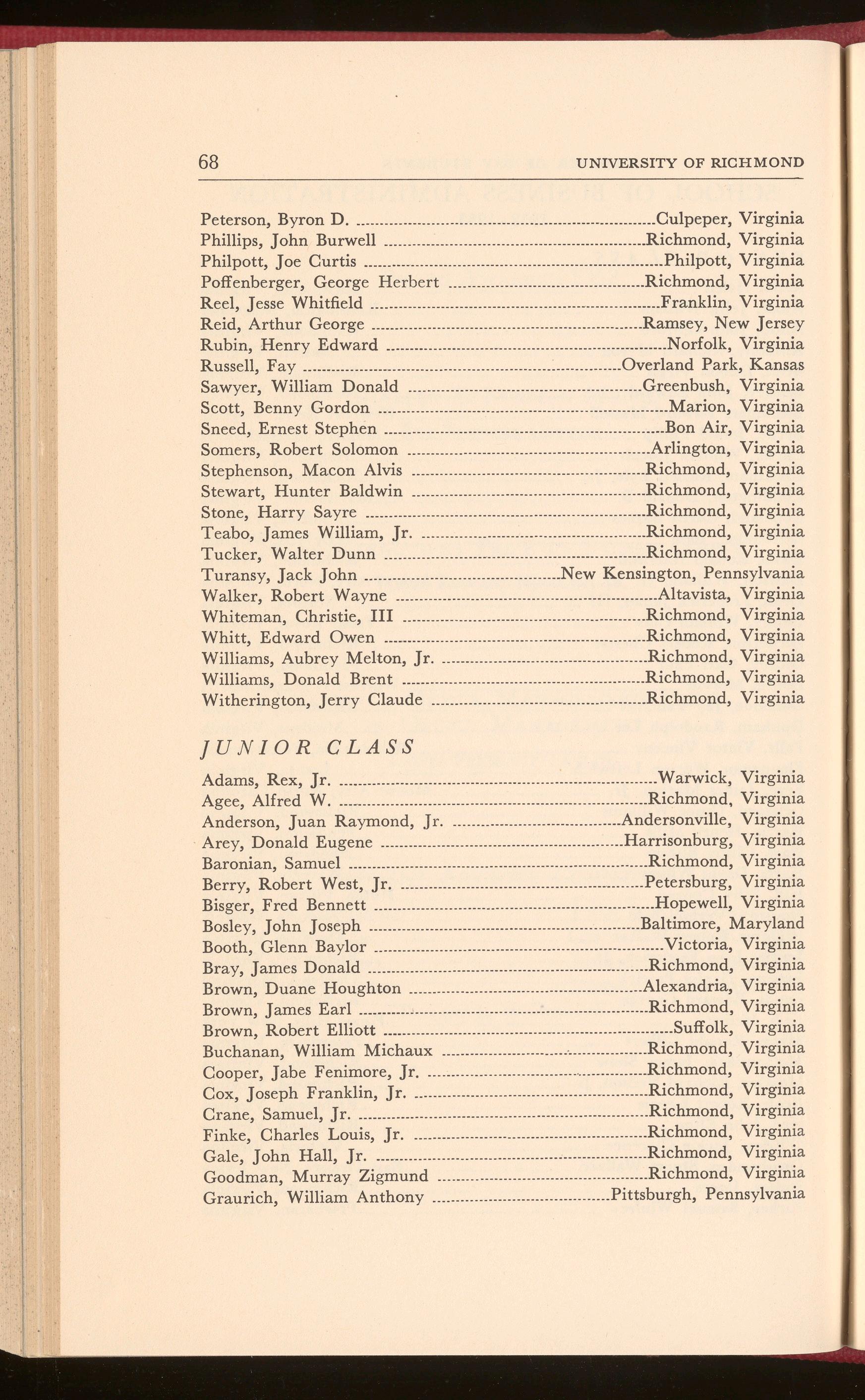 Alsop, John Clifford ........................ .................. ................ Richmond, Virginia