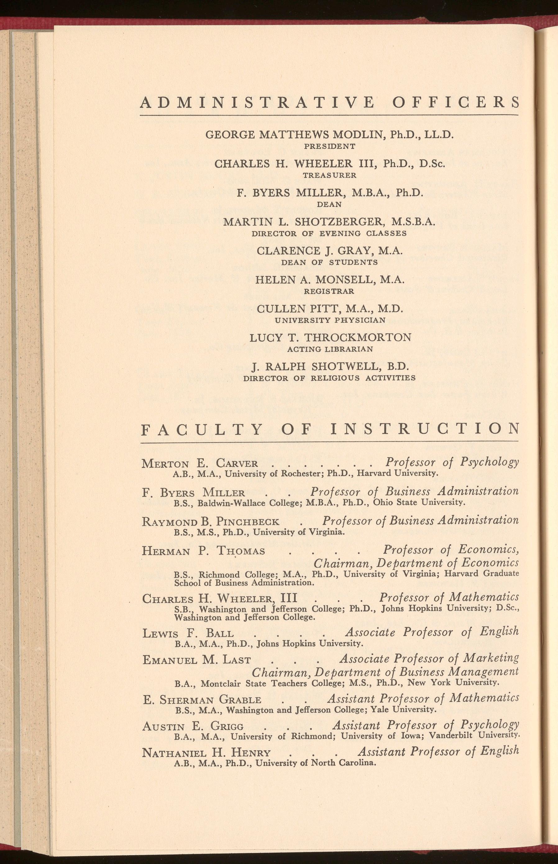 W. R. BROADDUS, JR ..................................................................... Vice-Rect or CHARLES H. WHEELER III, Ph .D ., D.Sc ..................... Secretary-Treasurer