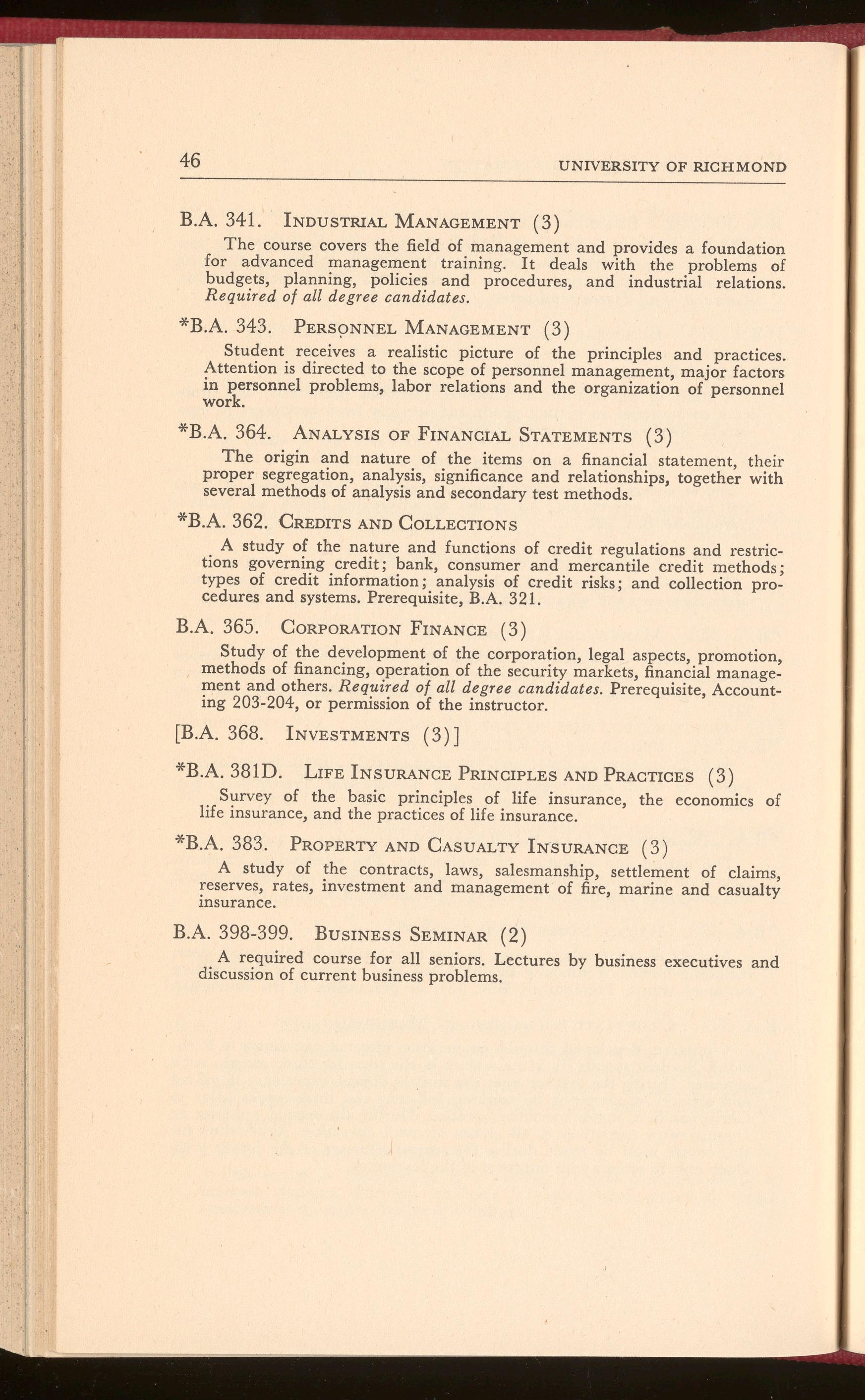 An advanced course in credits and collections, including financial state- ment interpretation, credit and collection correspondence, protection and redemption of credit. Special emphasis is placed on actual cases. Prerequi- site: B.A. 362, or permission of the instructor.