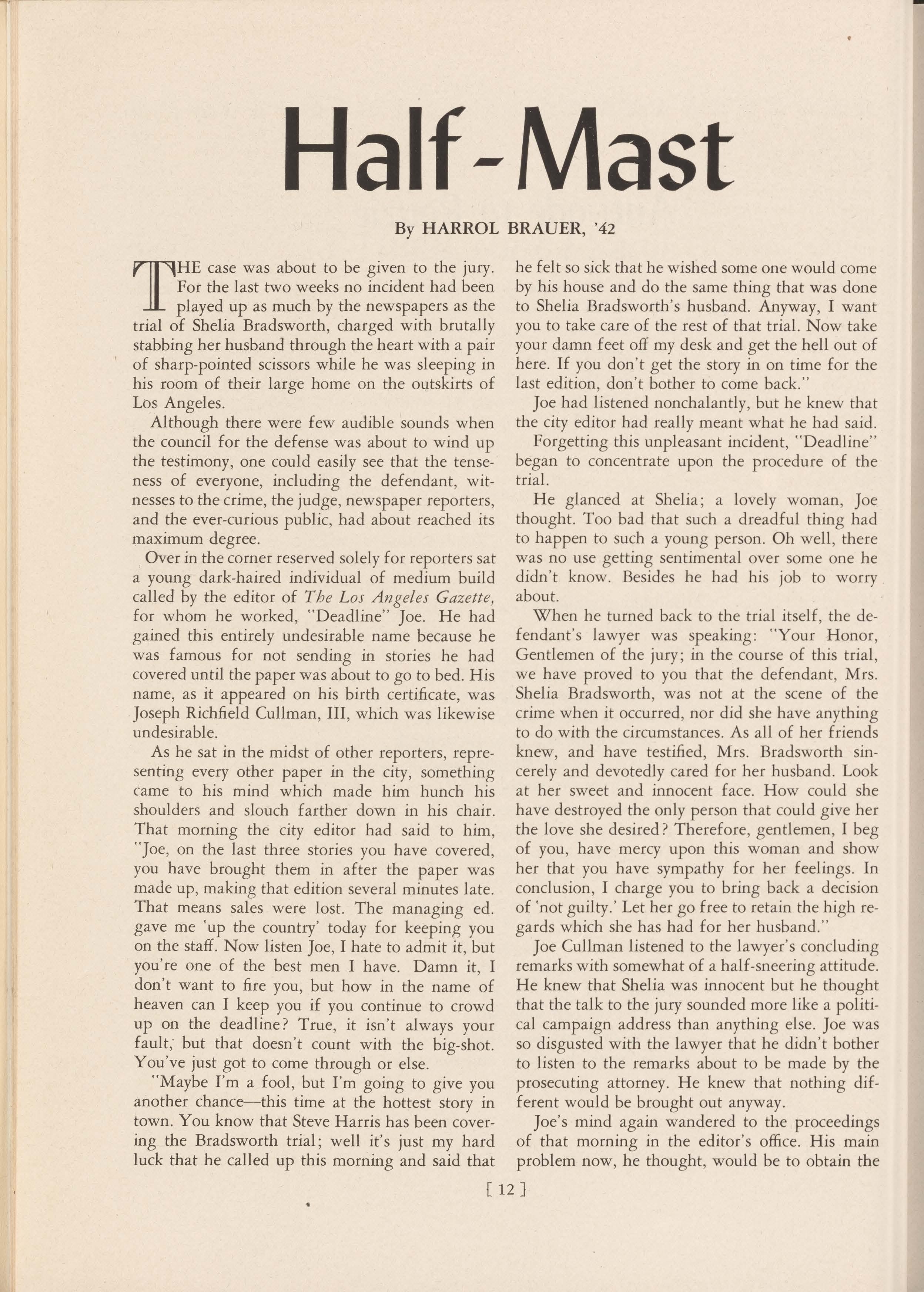 In a tiny cubbyhole, which was flatteringly called an office, "Big Shot" Wormier was attempting in vain to fill ten inches of editorial space with a wordy dissertation on "How to be Popular and Still Keep Your Frat Pin." Screaming in his ear was chief "Yes Girl" Coldhash.