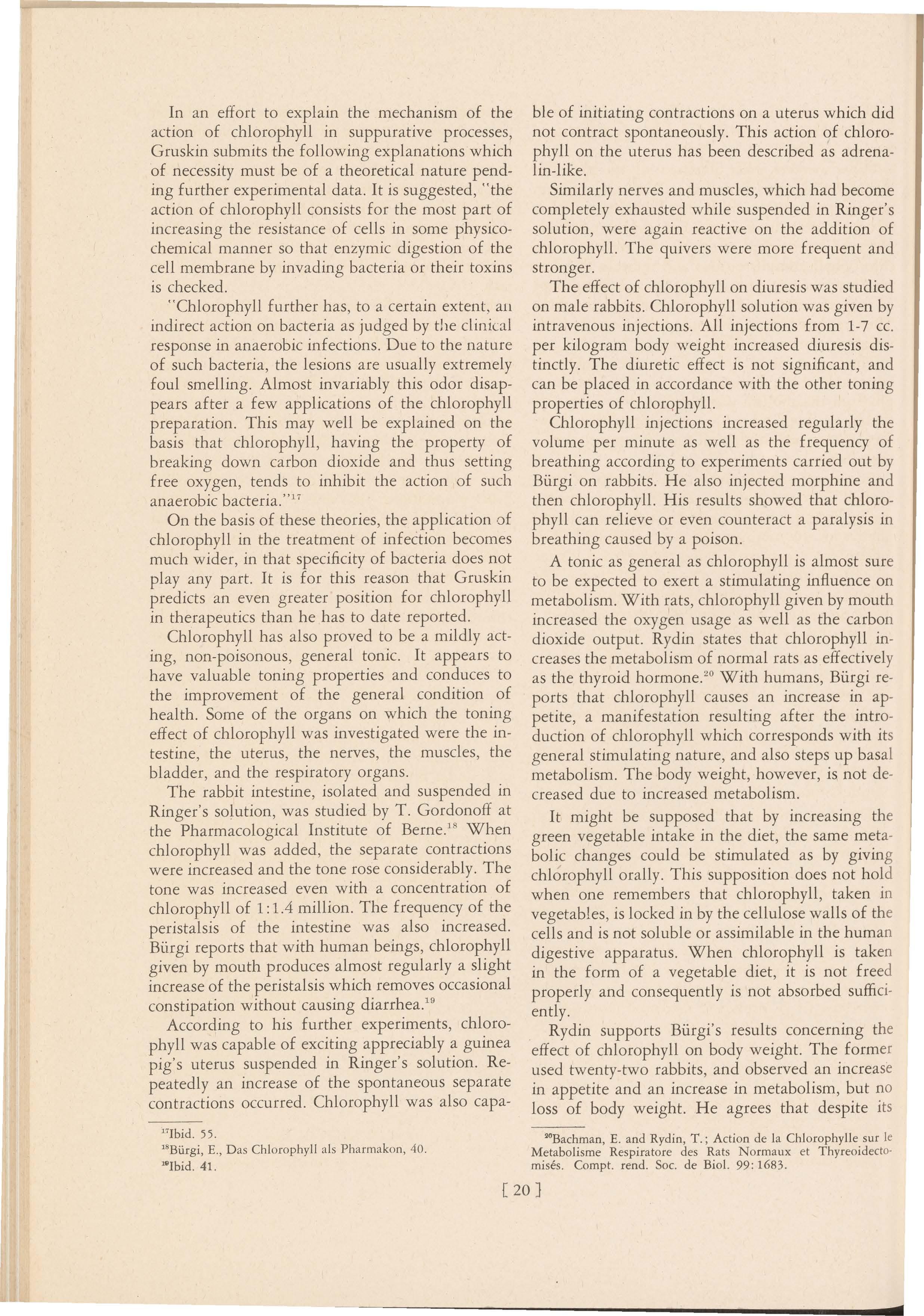 18 Biirgi, E., Das Chlorophyll als Pharmakon, 40. "'Ibid 41.