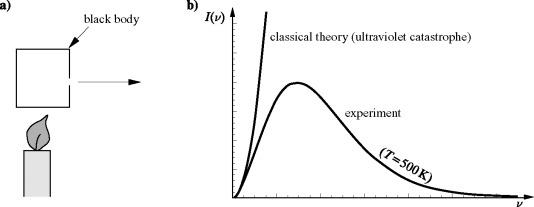 (b) The distribution of intensity I (ν) as a function of frequency ν There is a serious discrepancy between the results of classical theory and the experiment, especially for large frequencies Only after assuming the existence of energy quanta can theory and experiment be reconciled