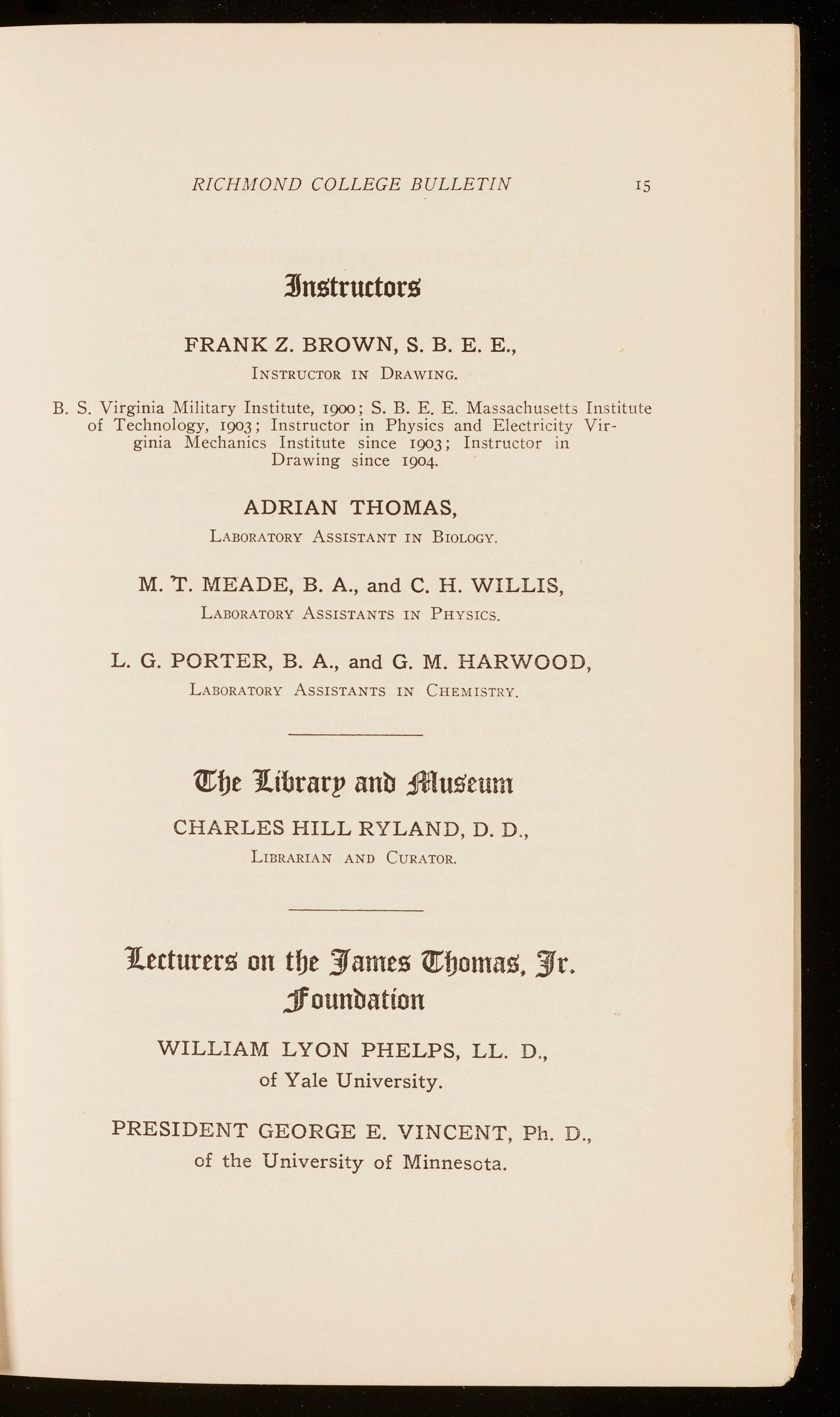 "The E. M. Foster Scholarship," founded by his wife, Mrs. J. Annie Foster, Richmond, Va.