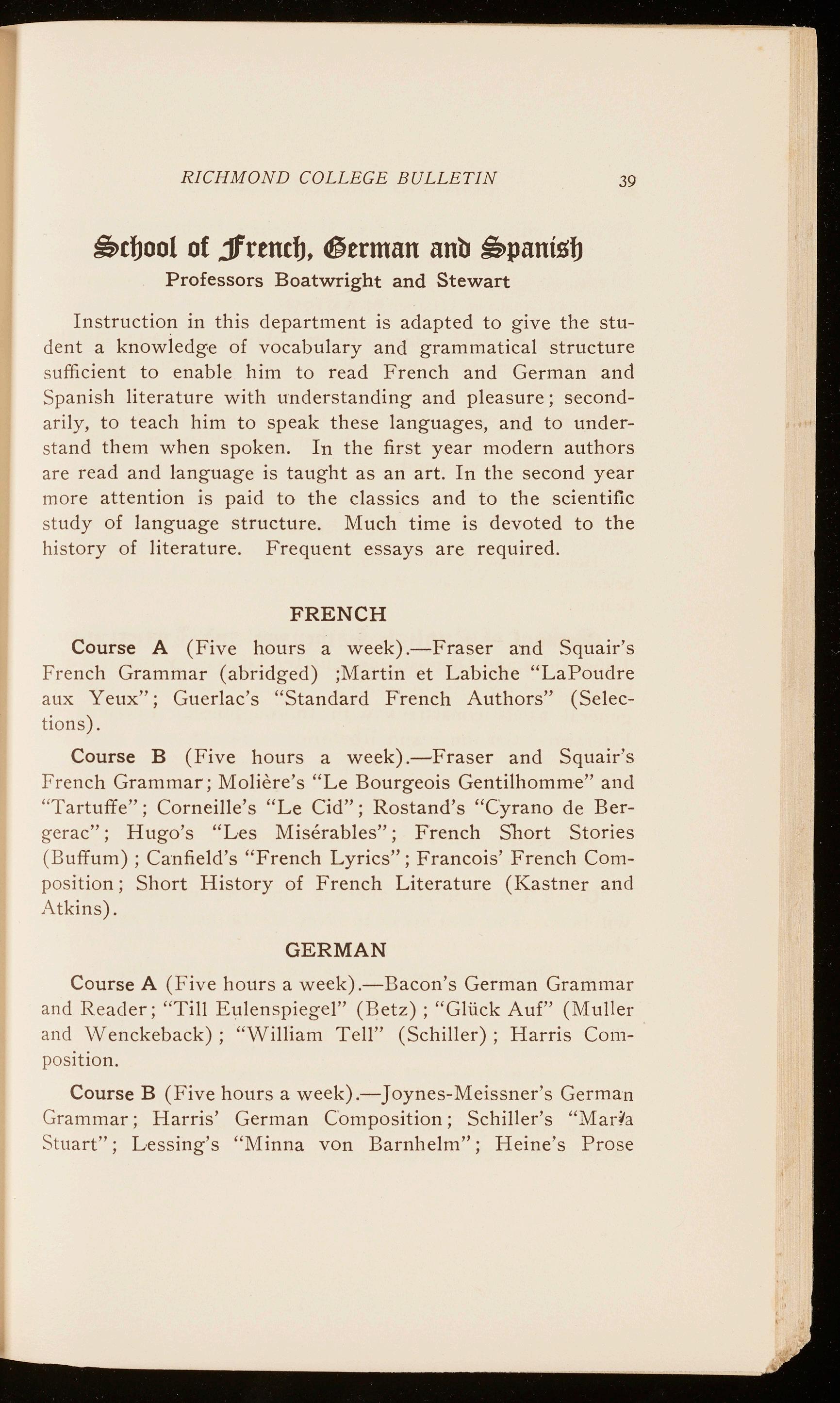 ROBERT W. DURETT, (A. l\I. , Richm ond College, '99; A. M. Harvard Univer sity , '05). FRENCH, GERMANANDLATIN.