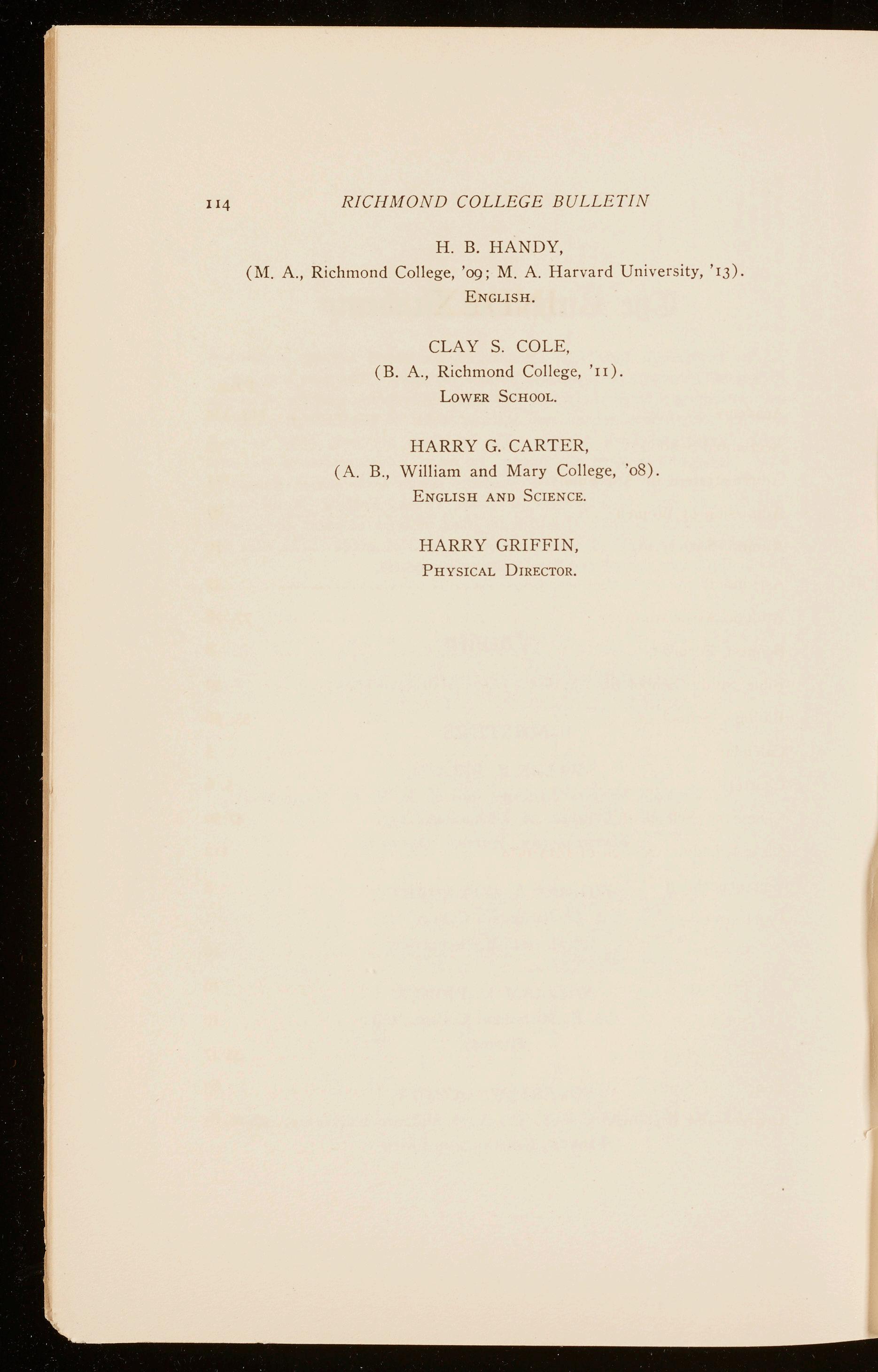 H.B. HANDY, (M. A., Richmond College, '09; M. A. Harvard University, '13).