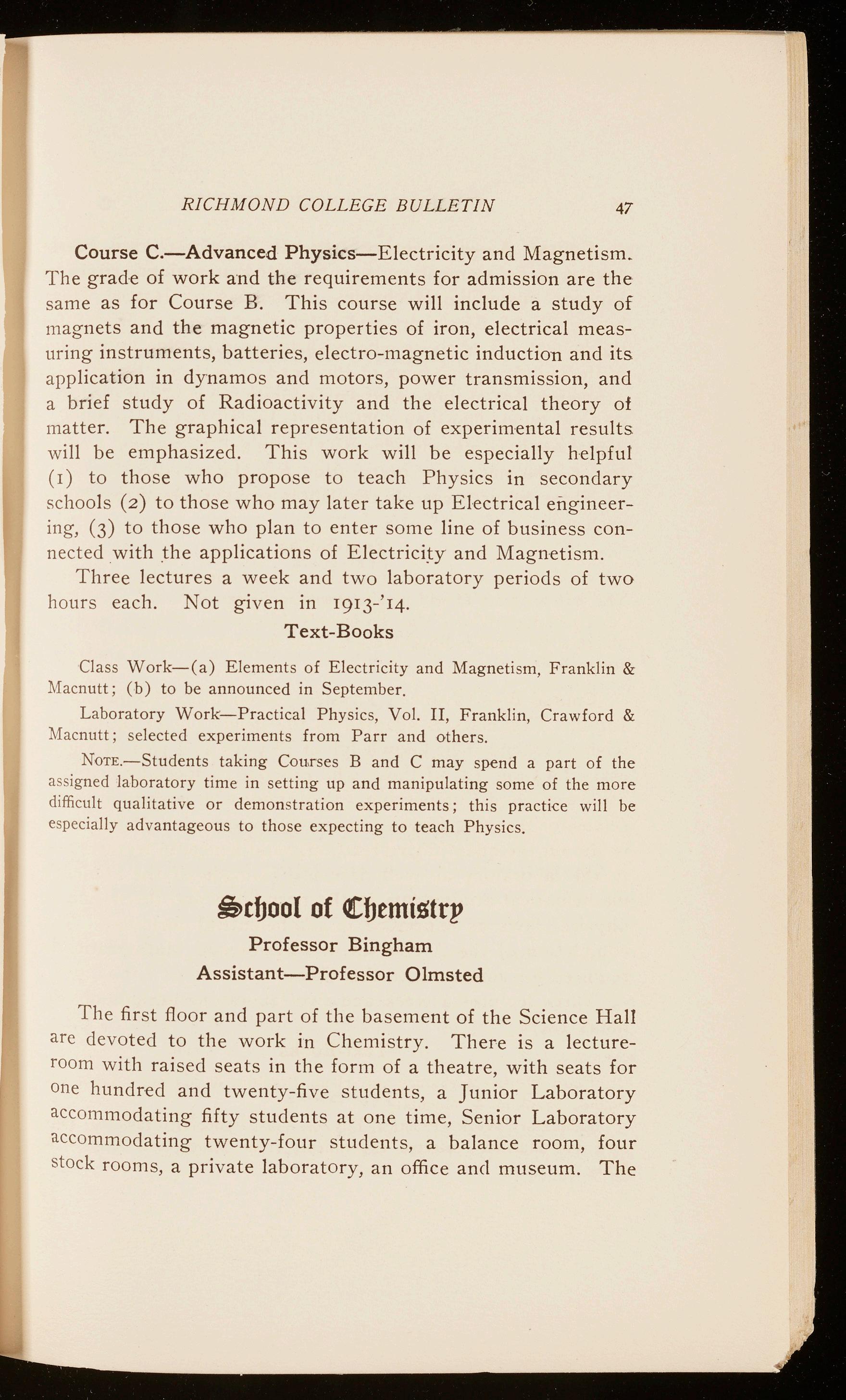 (B. S., Virginia l\Iilitary In stit ute, 'oo; S. B. E. E., Massachusetts In stitute of Technology, '03). MATHEMATICS,SCIENCE,DRAWING.