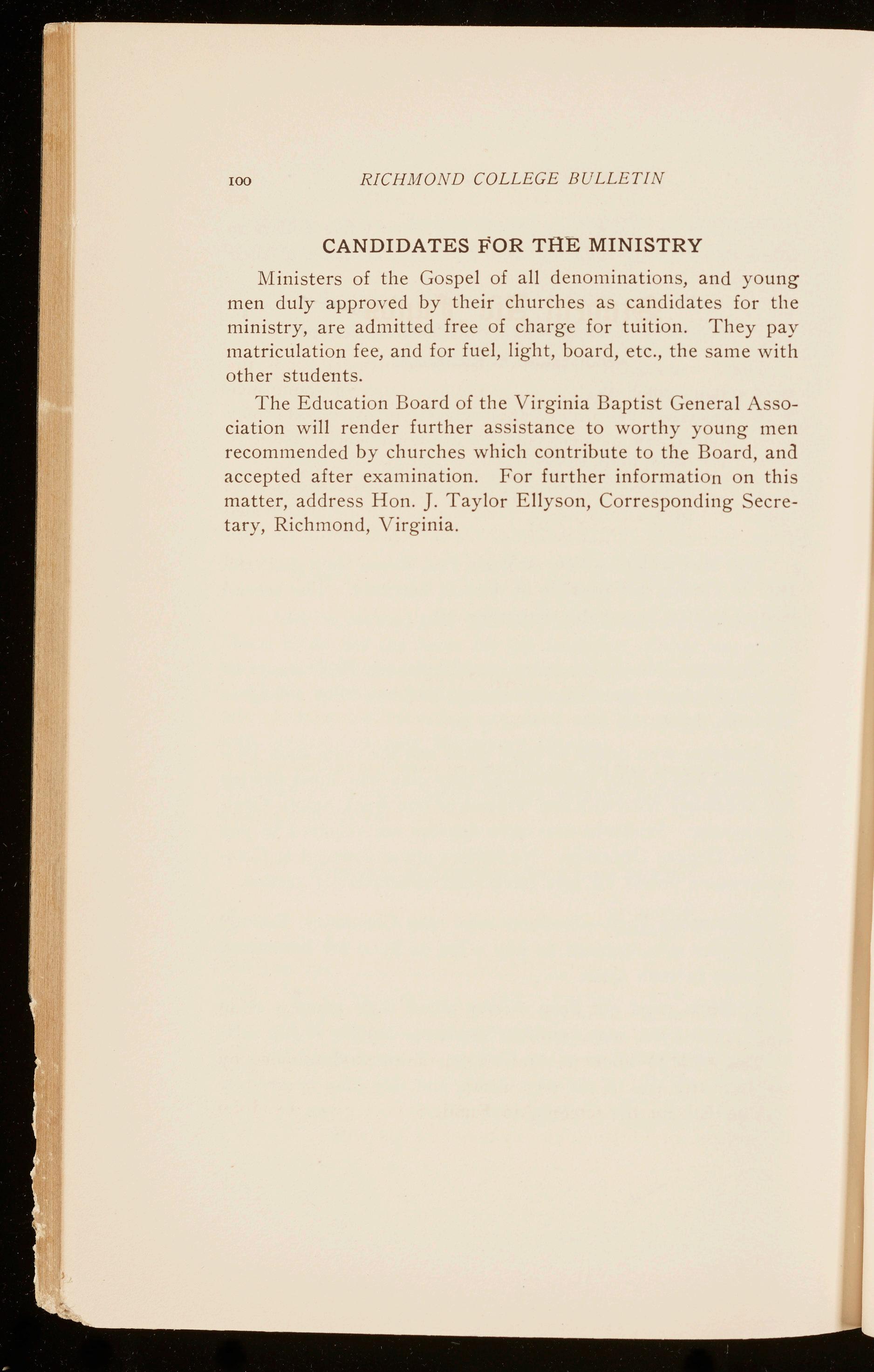 The donations are used to pay the board of young men studyi n g fo r the gospe l ministry of the Baptist denomination. Their application is not confined to young men from V irginia.