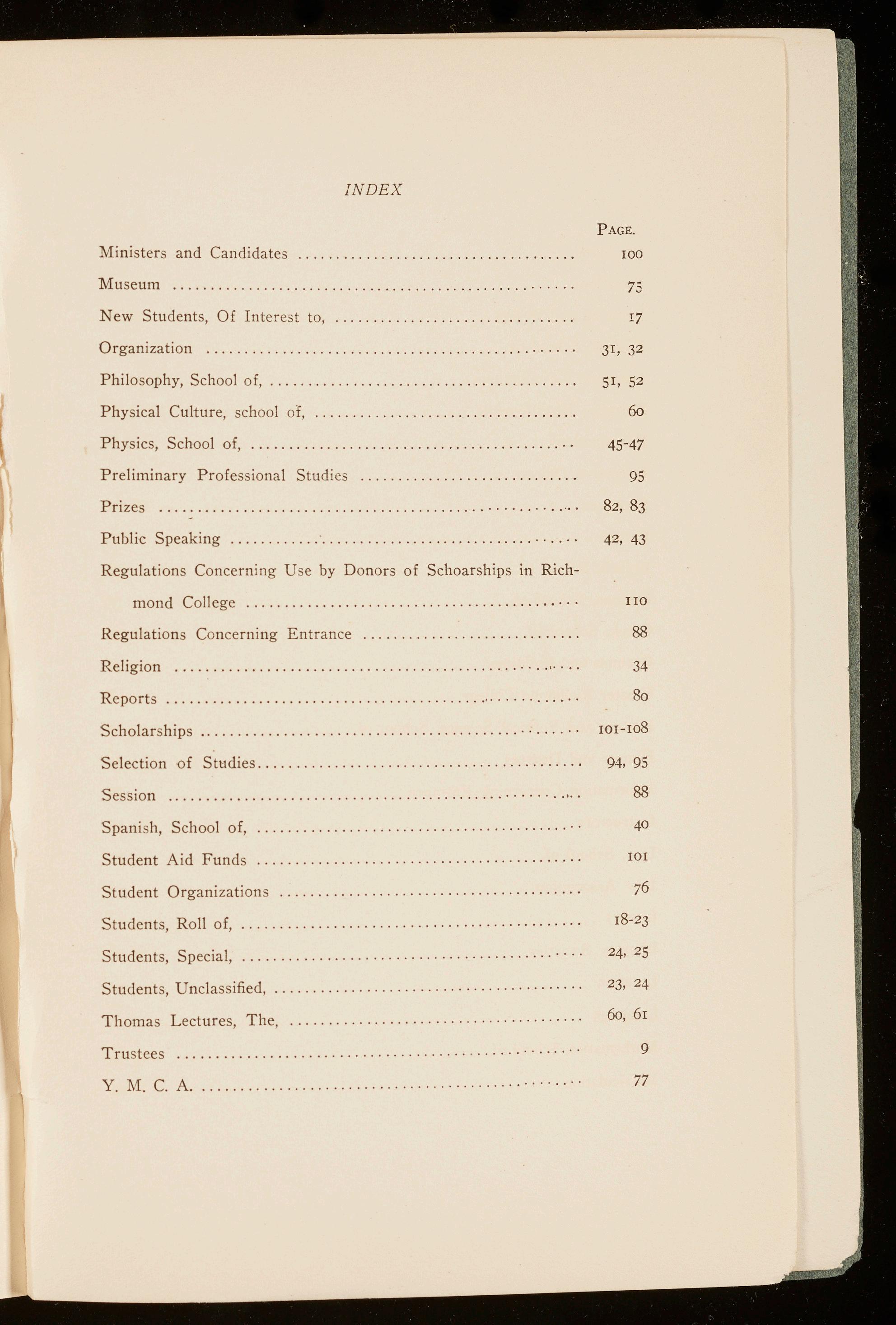 Regulations Concerning Use by Donors of Schoarships in R ichmond College