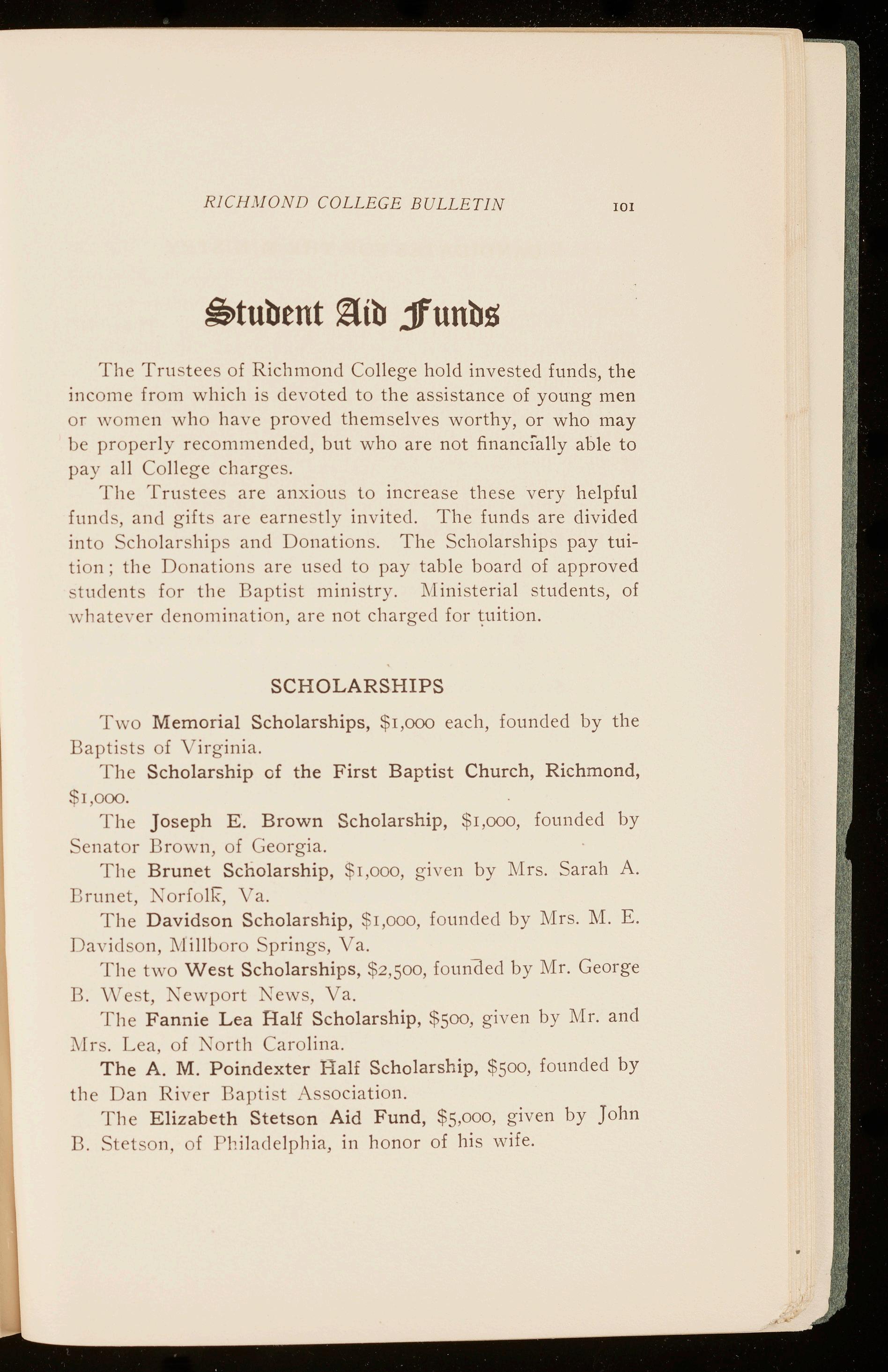 A Scholarship founded by John T. Vvilson, Ricfimond, Va.