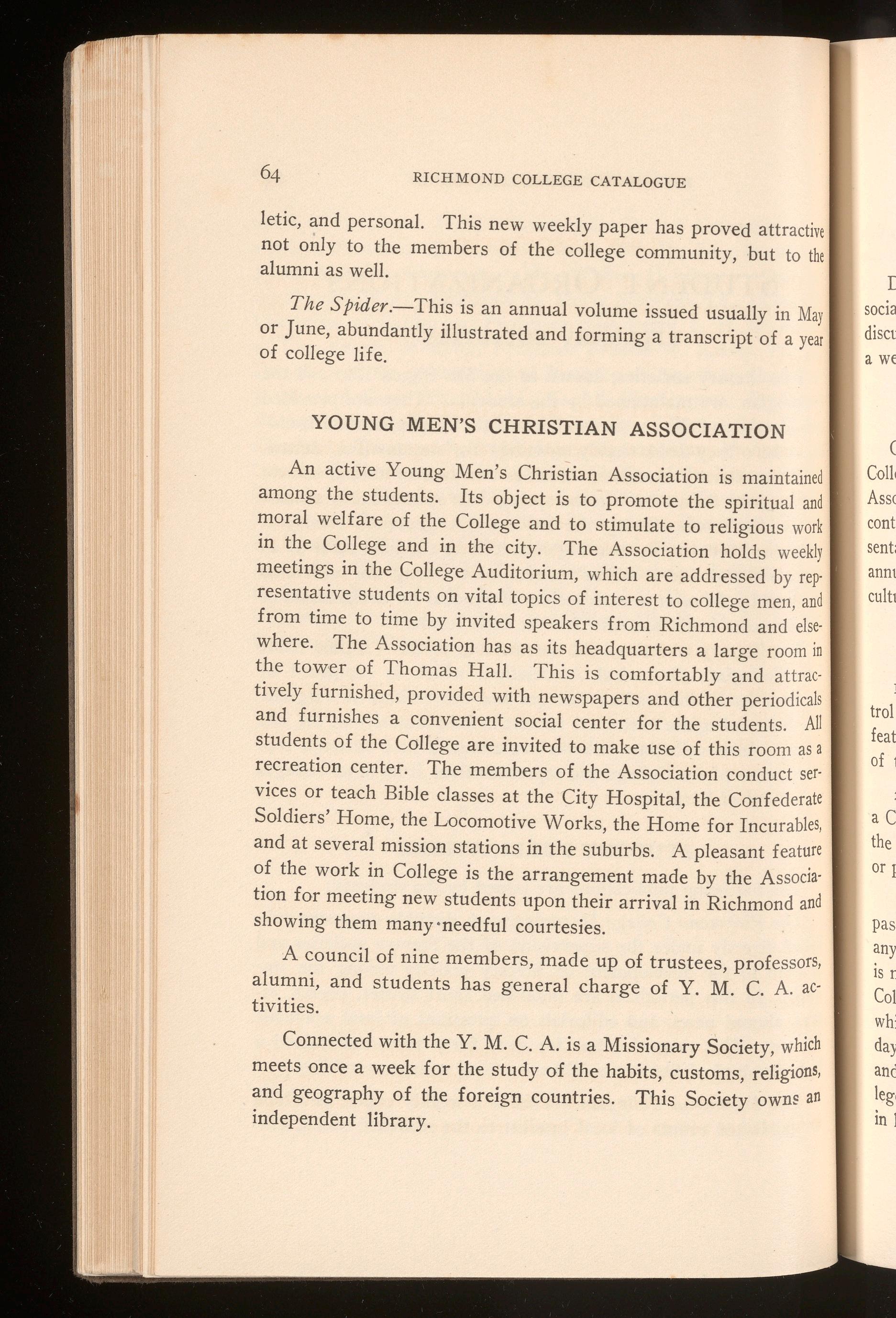 Direct communication is maintained with the heart of the City of Richmond by street cars, which enter the campus and make the trip for a five-cent fare. Faculty and students of both colleges have opportunity to enjoy all the advantages of a world-famous capital city and, at the same time, to live and study in the quiet of a beautiful suburban park.