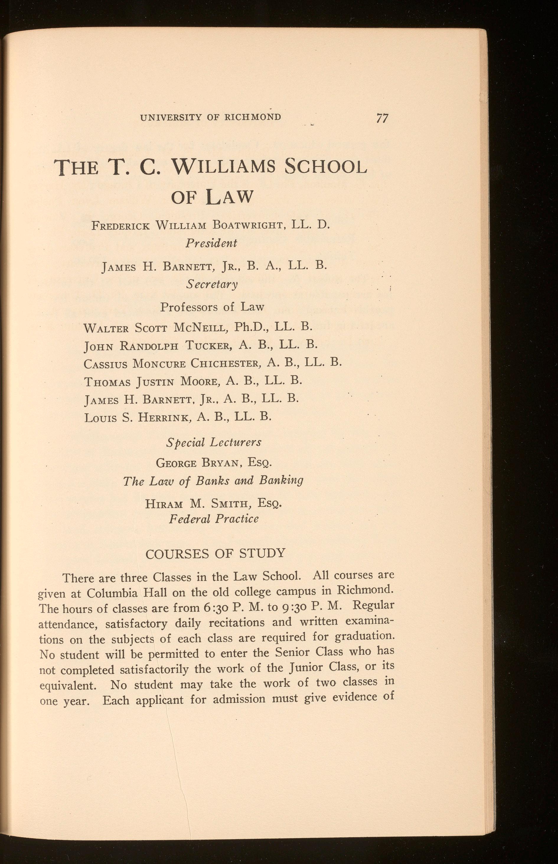 EXECUTIVE.-T.C. Williams, Jr., Thos. B. McAdams, Russell C. Williams, J. D . Crump, J. L. Camp, R.H. Pitt, B. West Tabb.