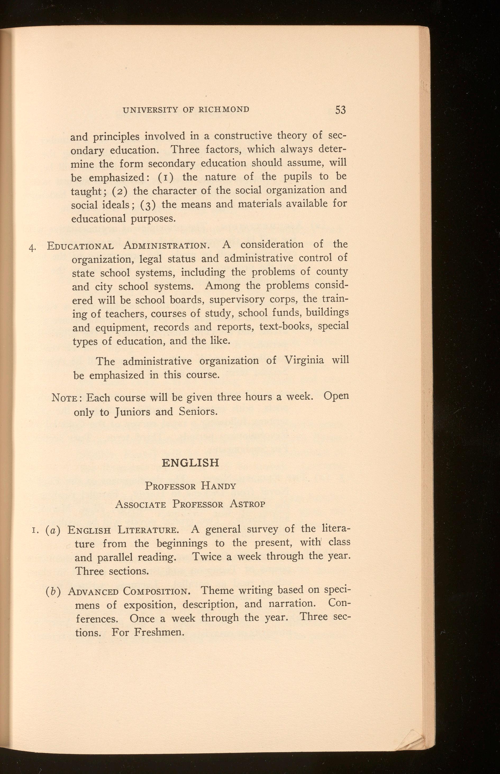 SEPTEMBER 15, THuRSDAY.-Session begins; registration of students.