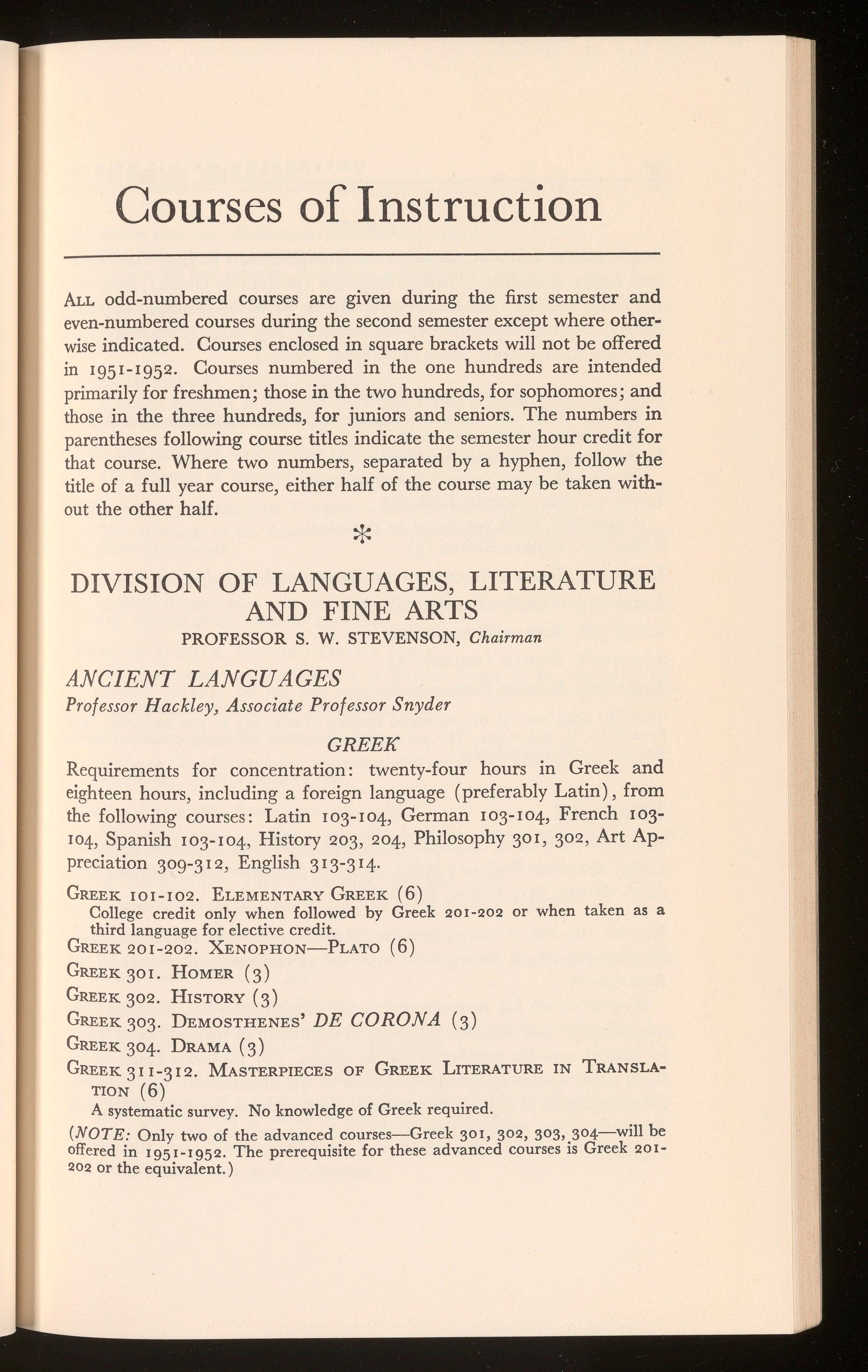 With Announcements for Session 1951-1952