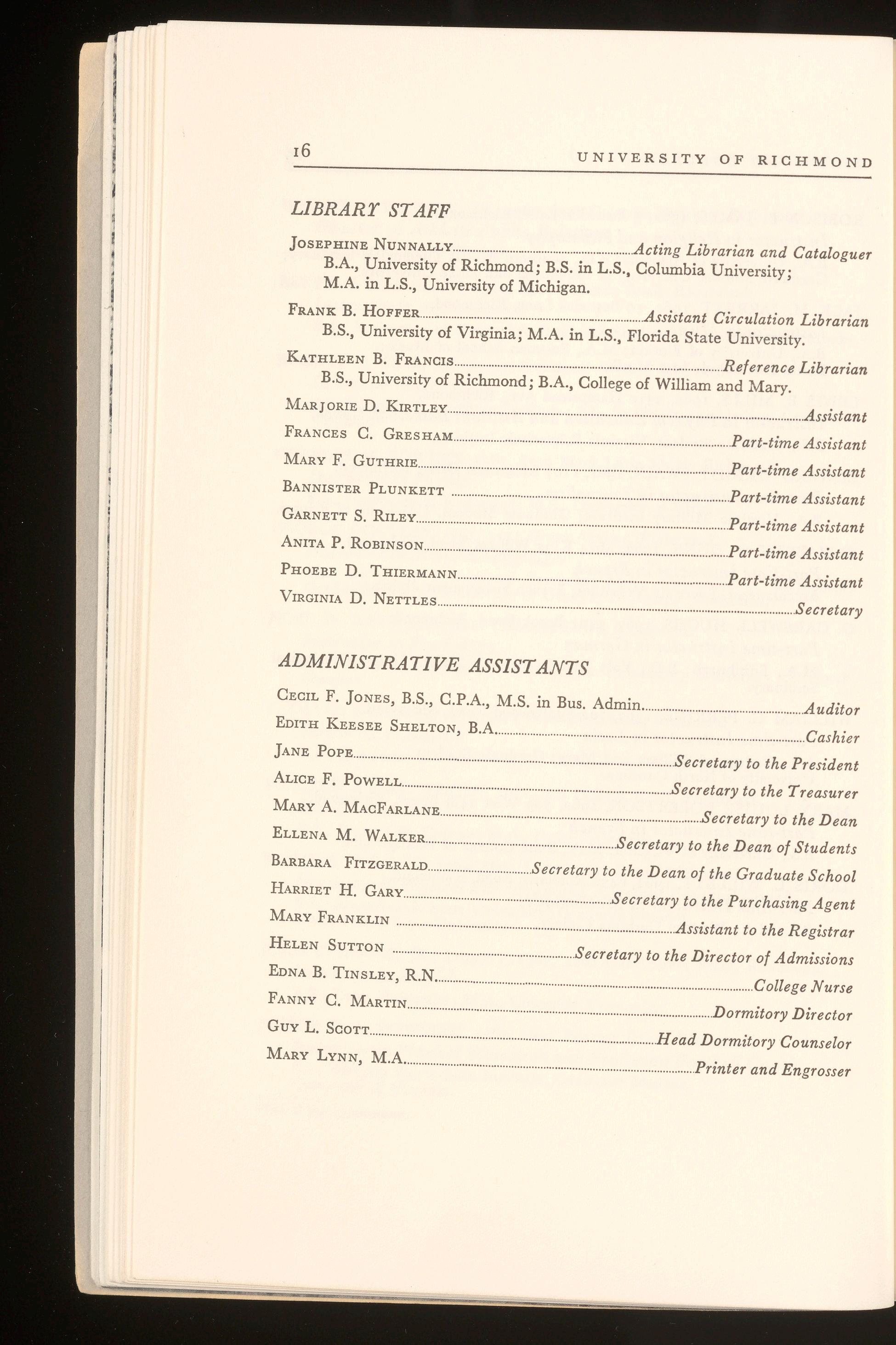 B.A., Richmond College; M.A., Ph.D., University of Virginia; Post-Graduate Student, Harvard Graduate School of Business Administration.