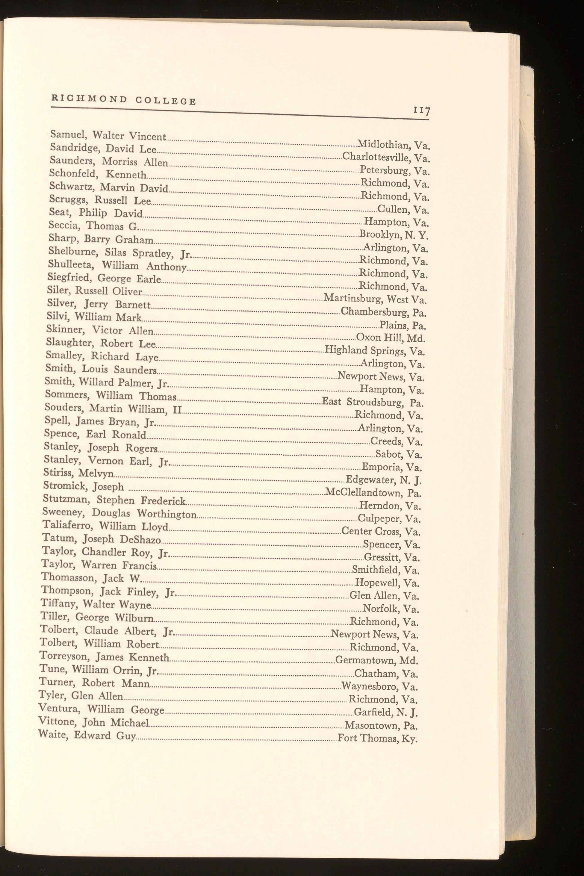 Thomas, Charles Hampton ..................................................................................Richmond, Va.