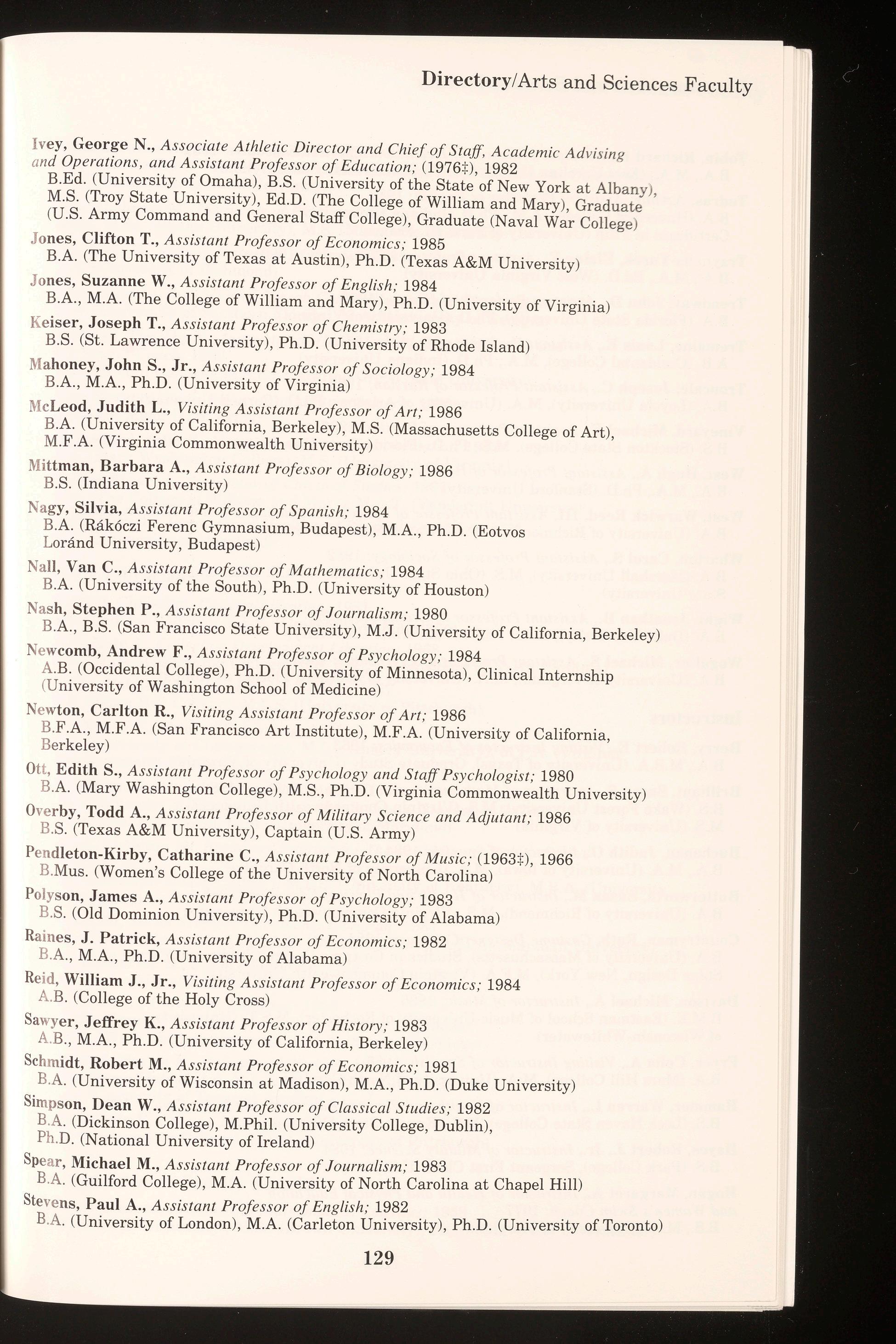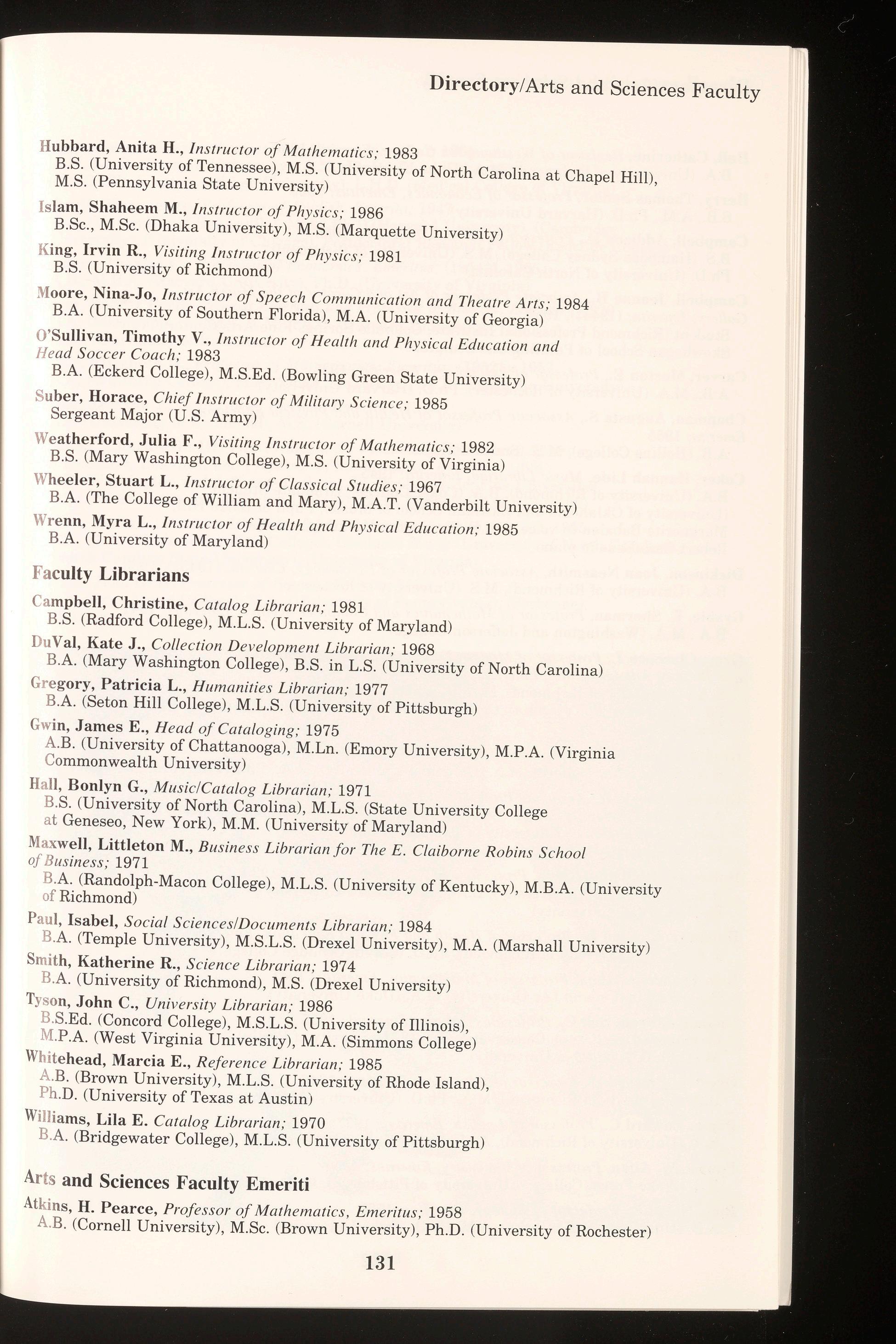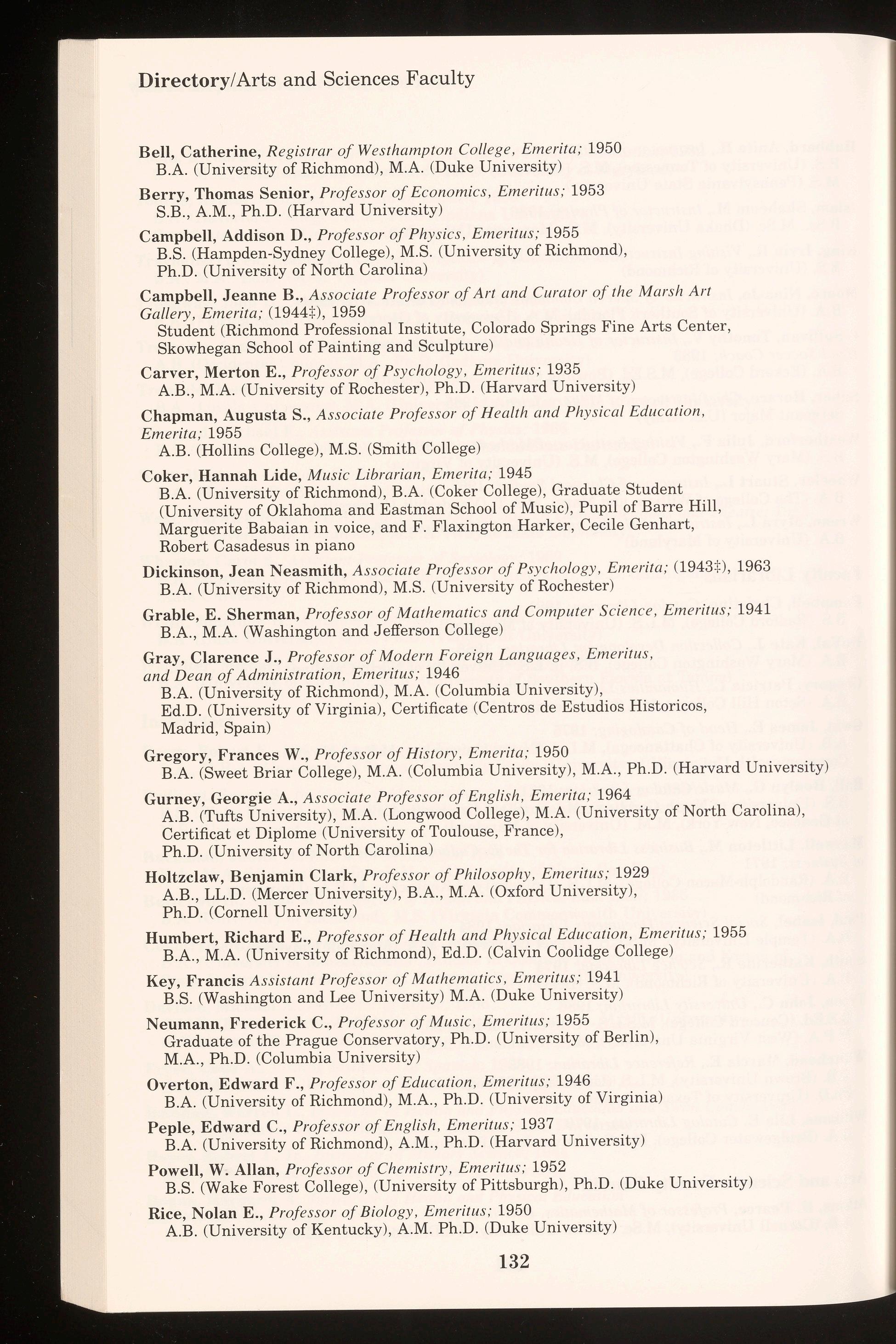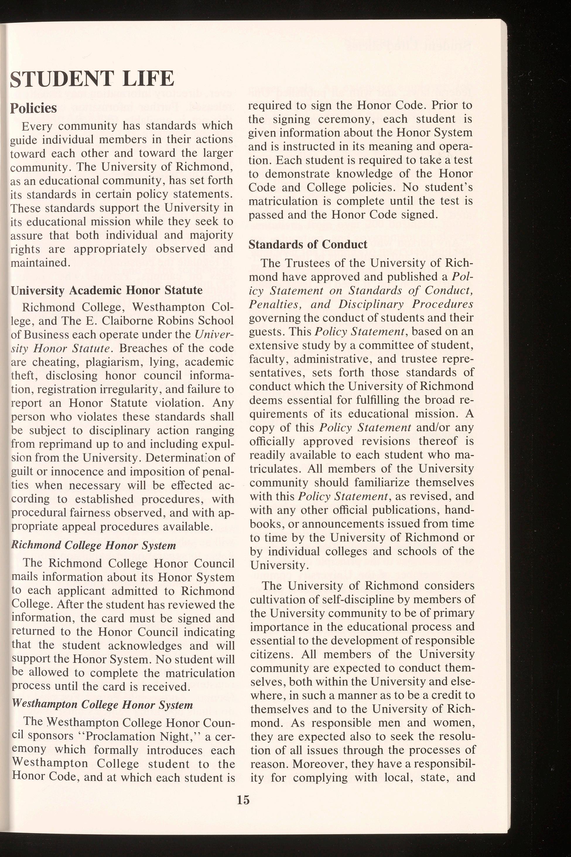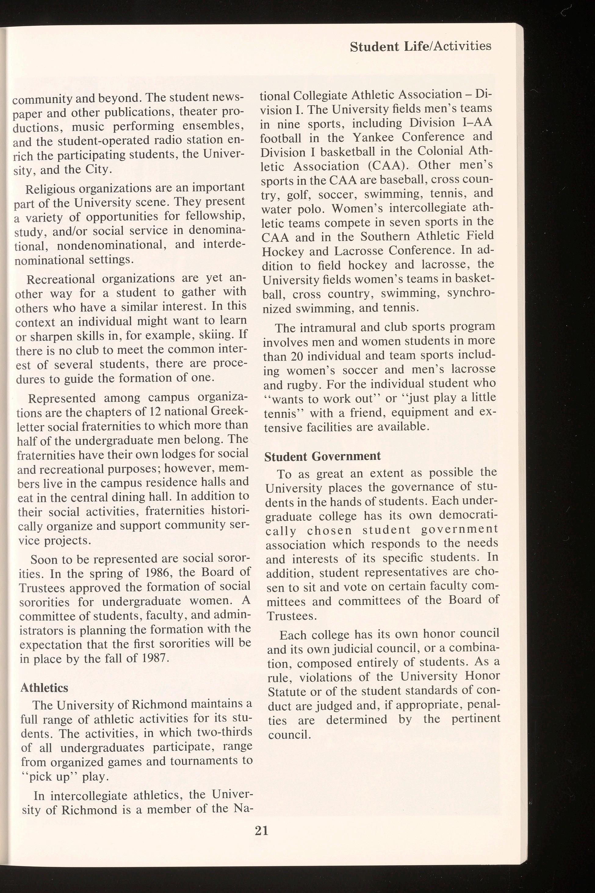 The University of Richmond does not discriminate on the basis of sex, religion, age, handicap, race, color or national origin. Any inquiries regarding the University's policies in these areas should be directed to the Office of the Vice President for Student Affairs, University of Richmond, Virginia 23173. Telephone: (804) 289-8032.