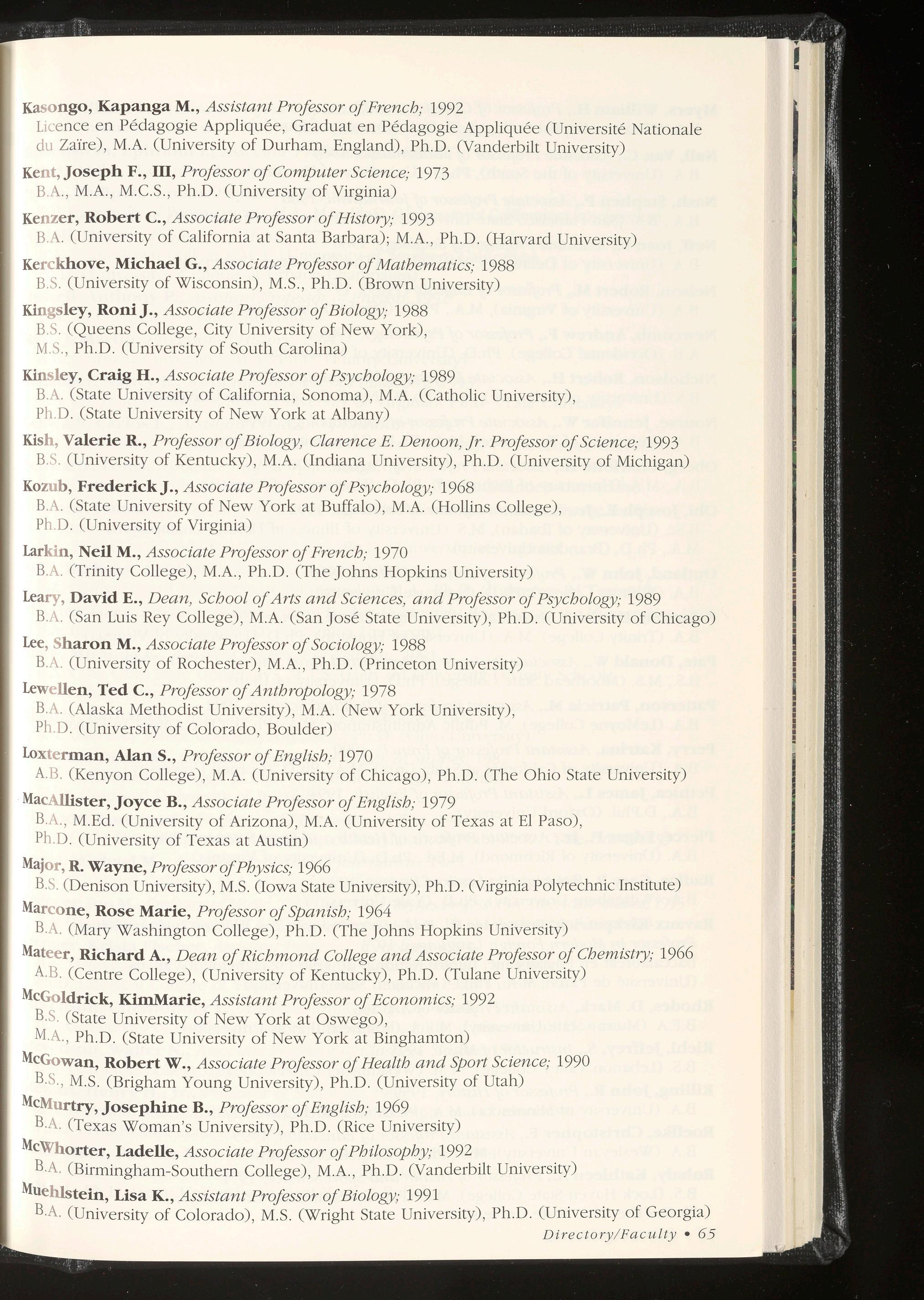 The University of Richmond does not discriminate on the basis of sex, religion, age, handicap, race, color or national origin. Any inquiries regarding the University's policies in these areas should be directed to the Office of the Vice President for Student Affairs, University of Richmond, Virginia 23173. Telephone: (804) 289-8032.
