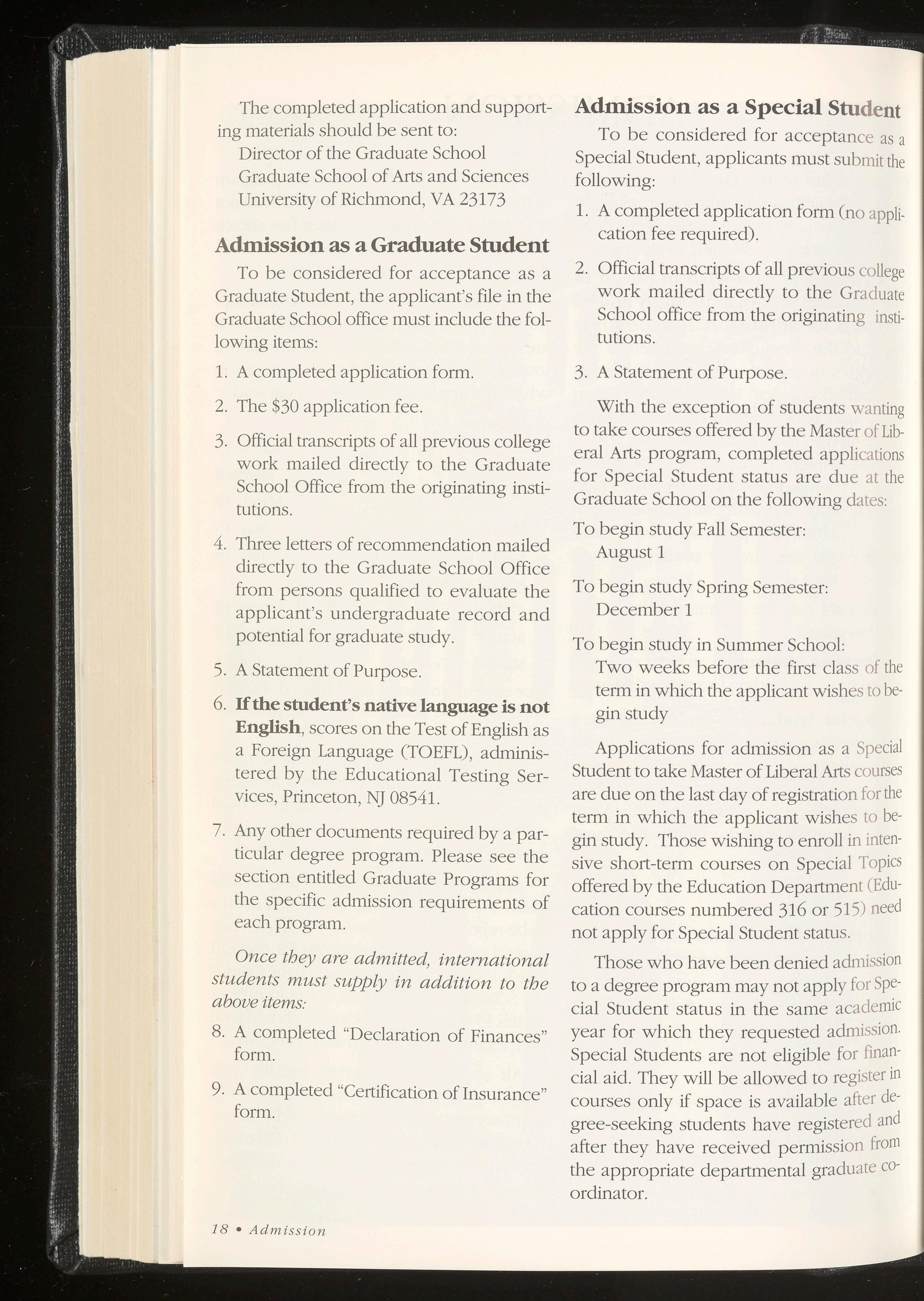 All items should be sent to: Graduate School , University of Richmond , VA 23173