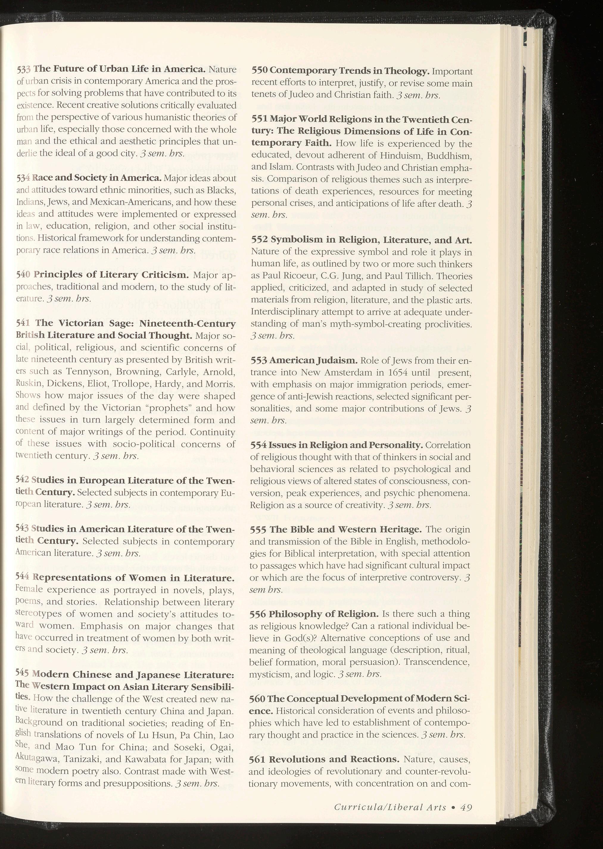 - An und ergrad uat e curriculum that requires mastery of essential intellectual tools, und ers tanding of basic aspects of human culture , exte nsi ve knowledge of a t least one area of study, and physical exerc ise