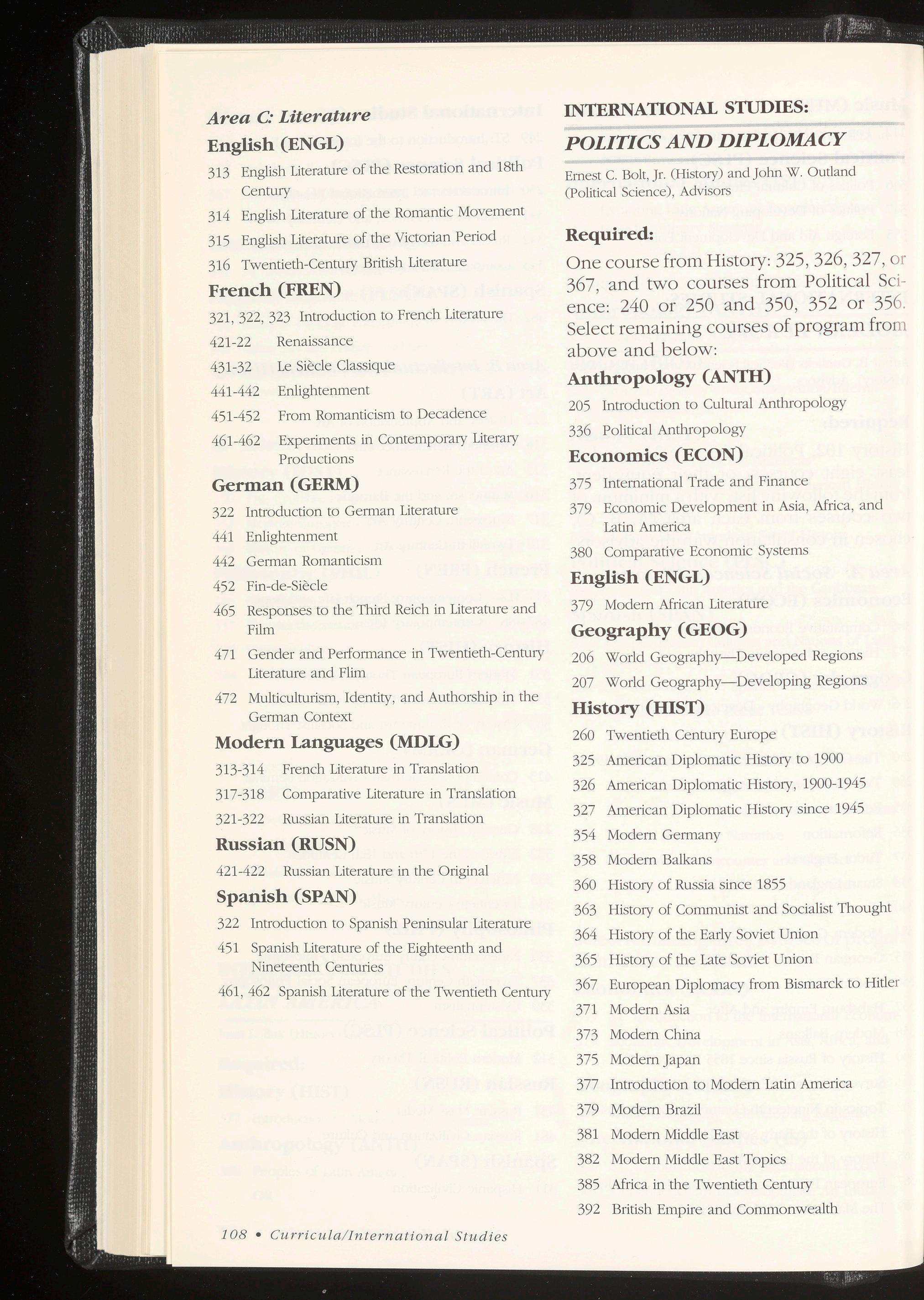 Geograp hy (see Internat ional Stu dies)