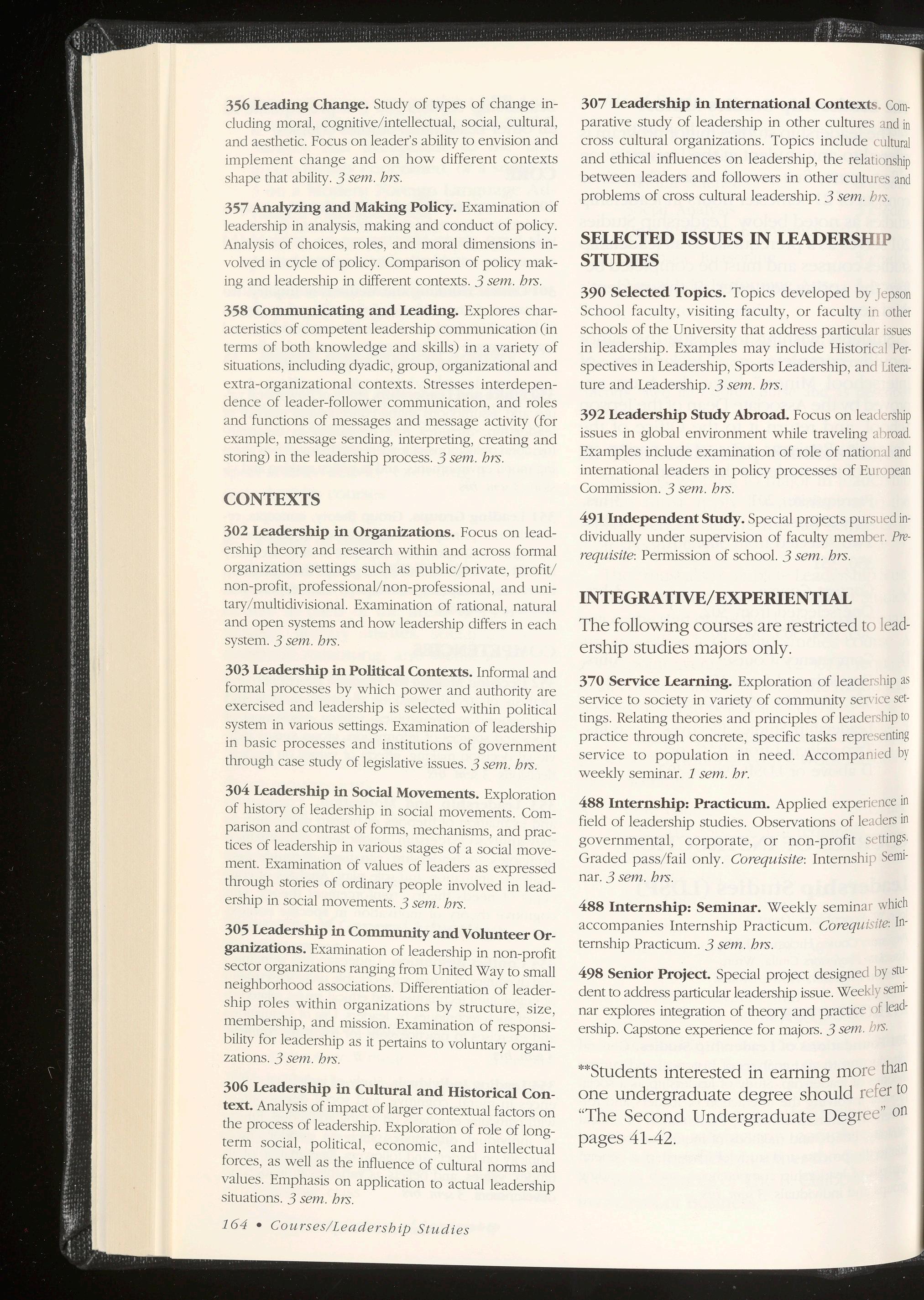 Schoo l of Leadersh ip Studies, 161-163