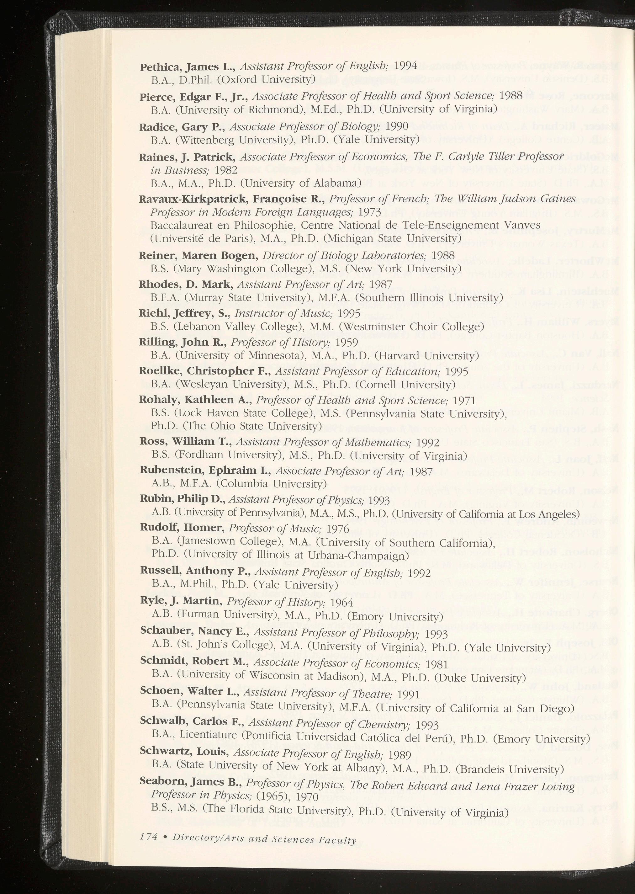 Faculty, Listing of: