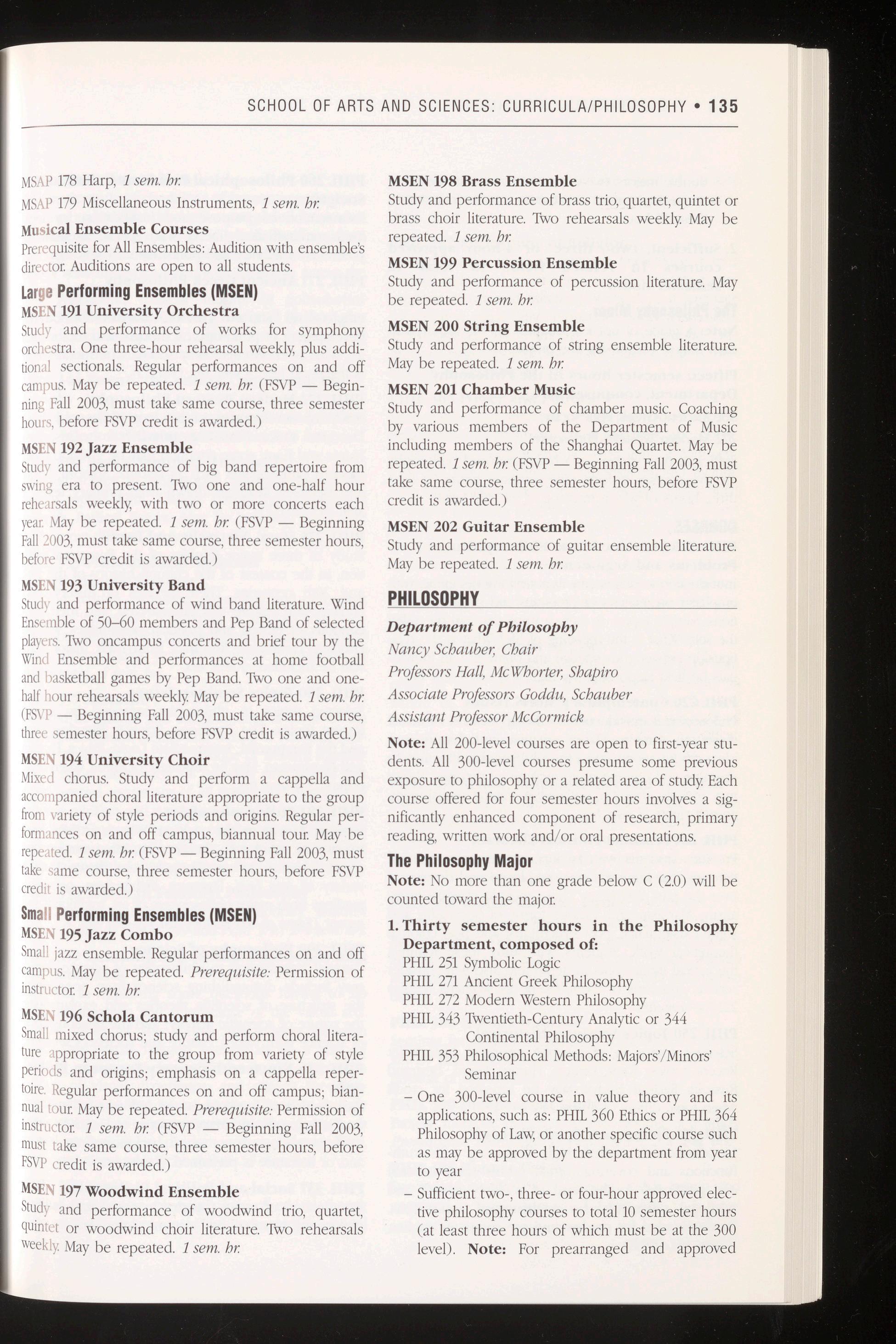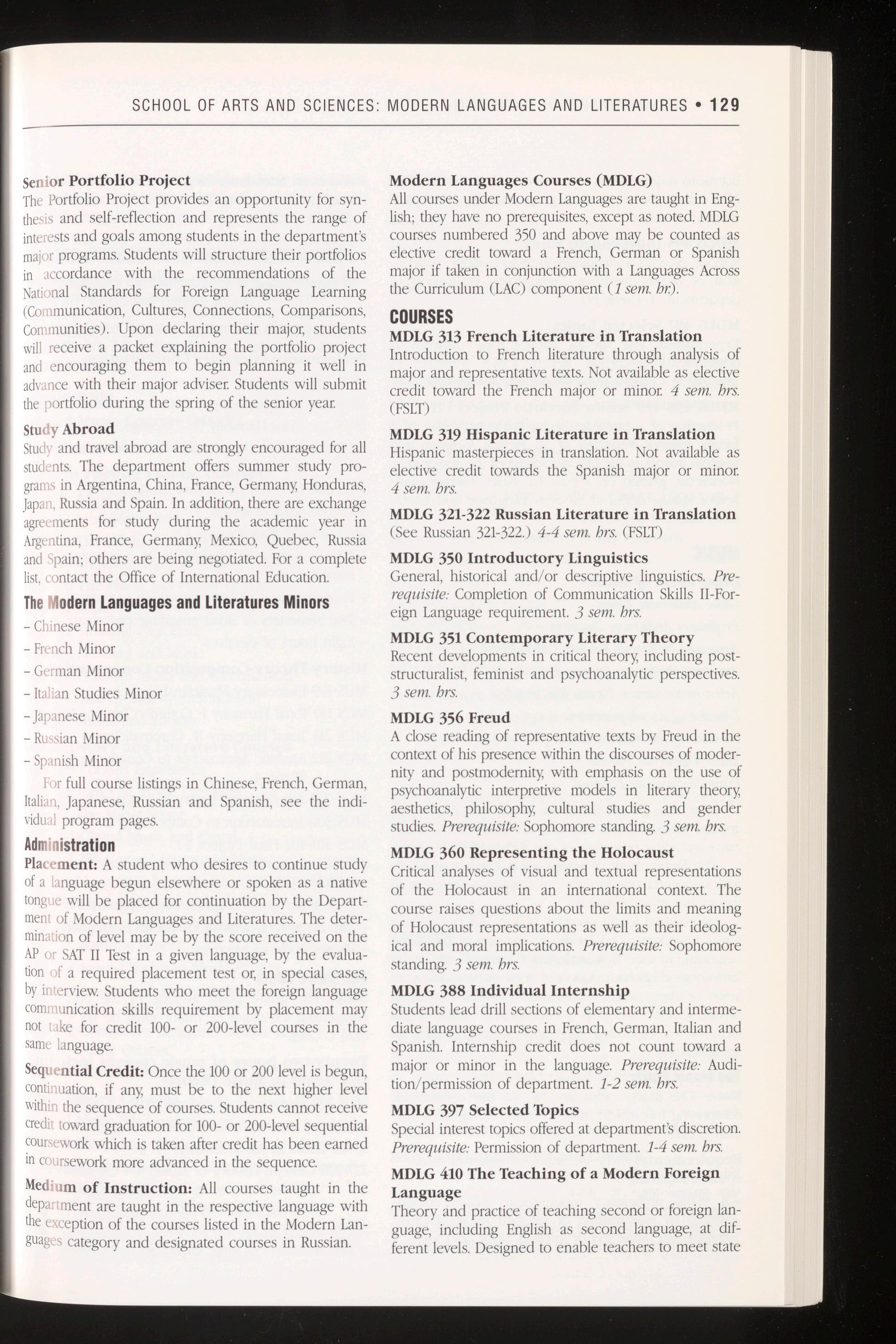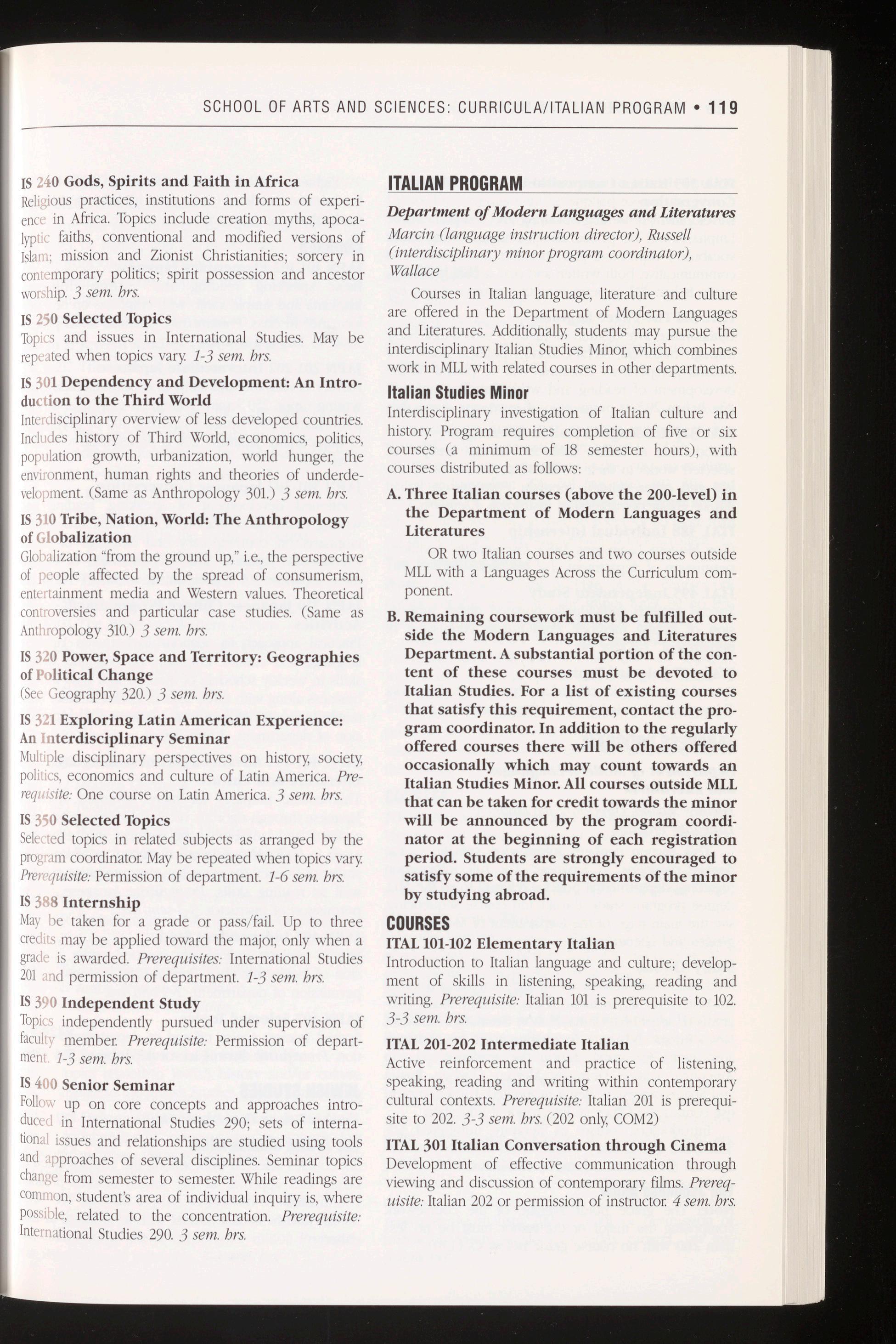 This cha pter presents departmental majors and minors , and the courses, with their descriptions, offered by each department. In a course description where the course numbers for a two-semester course are separated by a hyphen, either half of the course may be taken independently for credit, and in any order unless a pre requisite is stated.