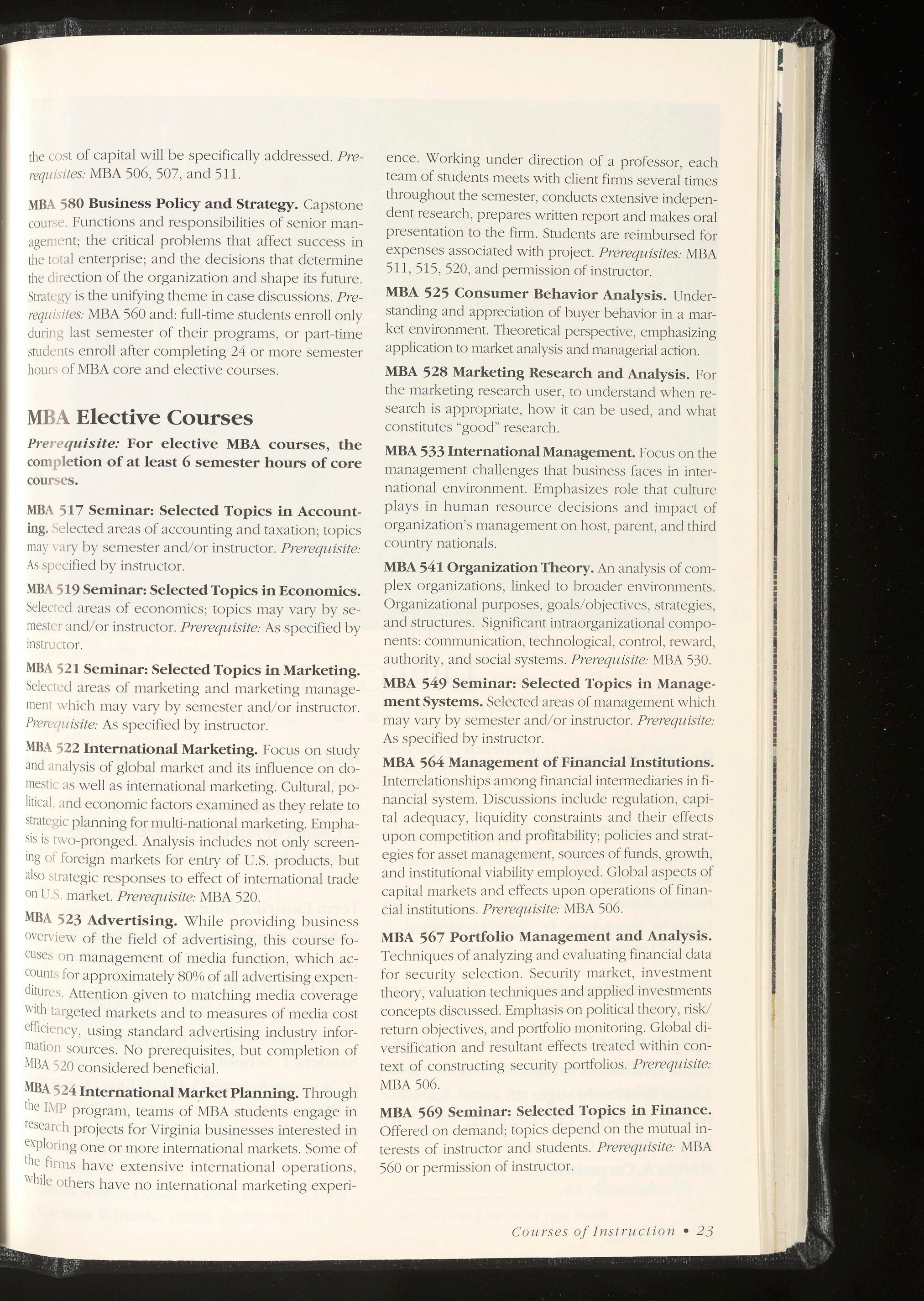The d(·gree is completed by the selection of two electives toward the end of the program Th ese courses offer the student an oppor u n ity for specialization or to addresssome of the current and challenging issues fac 1g organizations in today 's turbulentbusin ss environment.