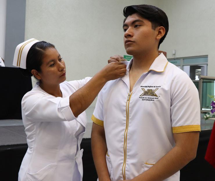 La tradición y la cultura también tuvieron su espacio. La Tuna TURSE, por su parte, celebró su aniversario con el “Certamen Nacional de Tunas Universitarias”, fue una muestra del talento musical, llenando las calles del Centro Histórico de Oaxaca de alegría y baile. Asimismo, el talento de nuestros estudiantes brilló una vez más en el tradicional concurso de canto, sorprendiéndonos con voces excepcionales. La formación profesional es uno de nuestros pilares fundamentales. Siendo uno de los momentos más emotivos del año. La “ceremonia de entrega de cofias y pines” marcó el inicio de una nueva etapa para nuestros estudiantes de enfermería, quienes están llamados a ser los futuros líderes en el cuidado de la salud. Nuestro compromiso con la sociedad se hizo evidente en jornadas como “Te ayudo Xoxocotlán”, una oportunidad para que nuestros estudiantes aplicaran sus conocimientos en beneficio de la comunidad, brindando atención médica, nutricional, odontológica, asesoría legal y psicológica. Nuestras tradiciones se mantuvieron vivas con el Concurso de Altares, celebrado en ambos campus, fue una muestra de la creatividad y el respeto por nuestras raíces.