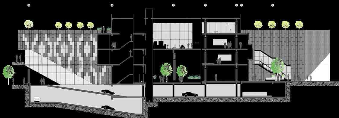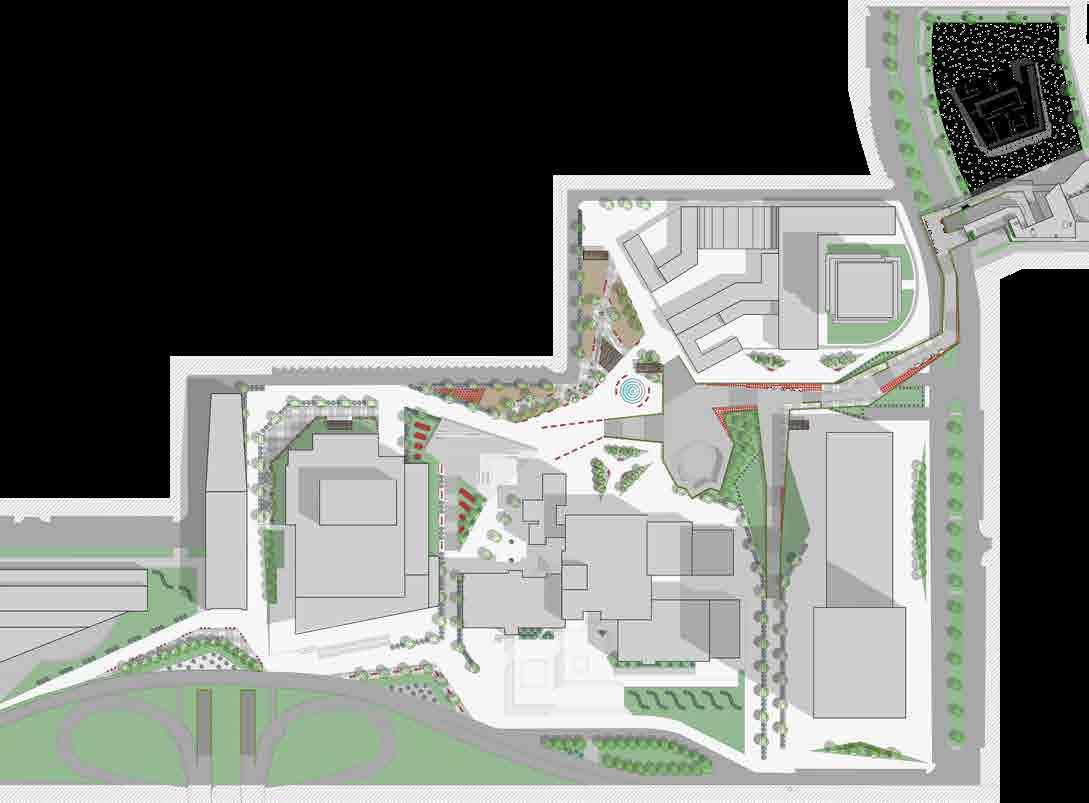The proposed urban design focuses on revitalizing an area occupied by various cultural entities, which are currently separated by party walls and streets.