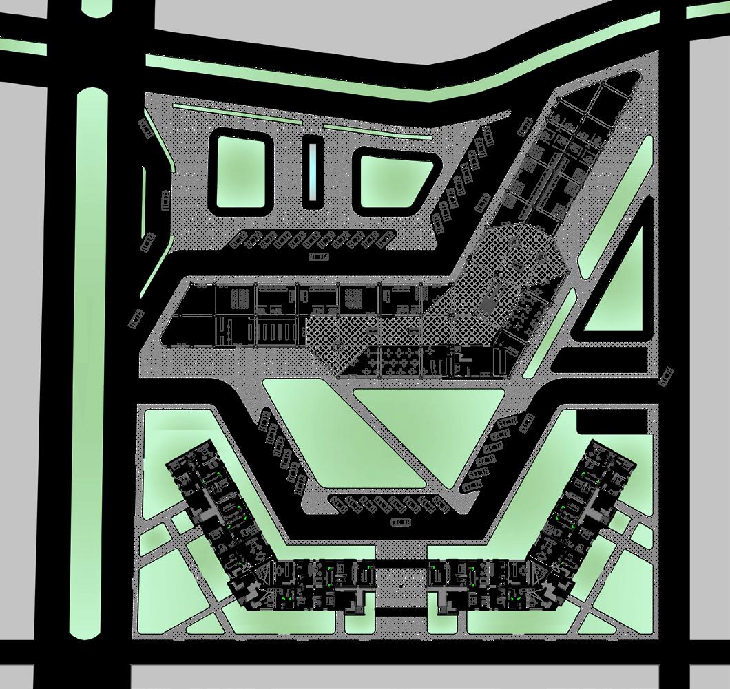 The urban design features a central public space within the urban block, creating a dynamic and engaging environment. To the north, a residential area is proposed to address the high demand for housing, while to the south, a commercial area is planned to cater to the