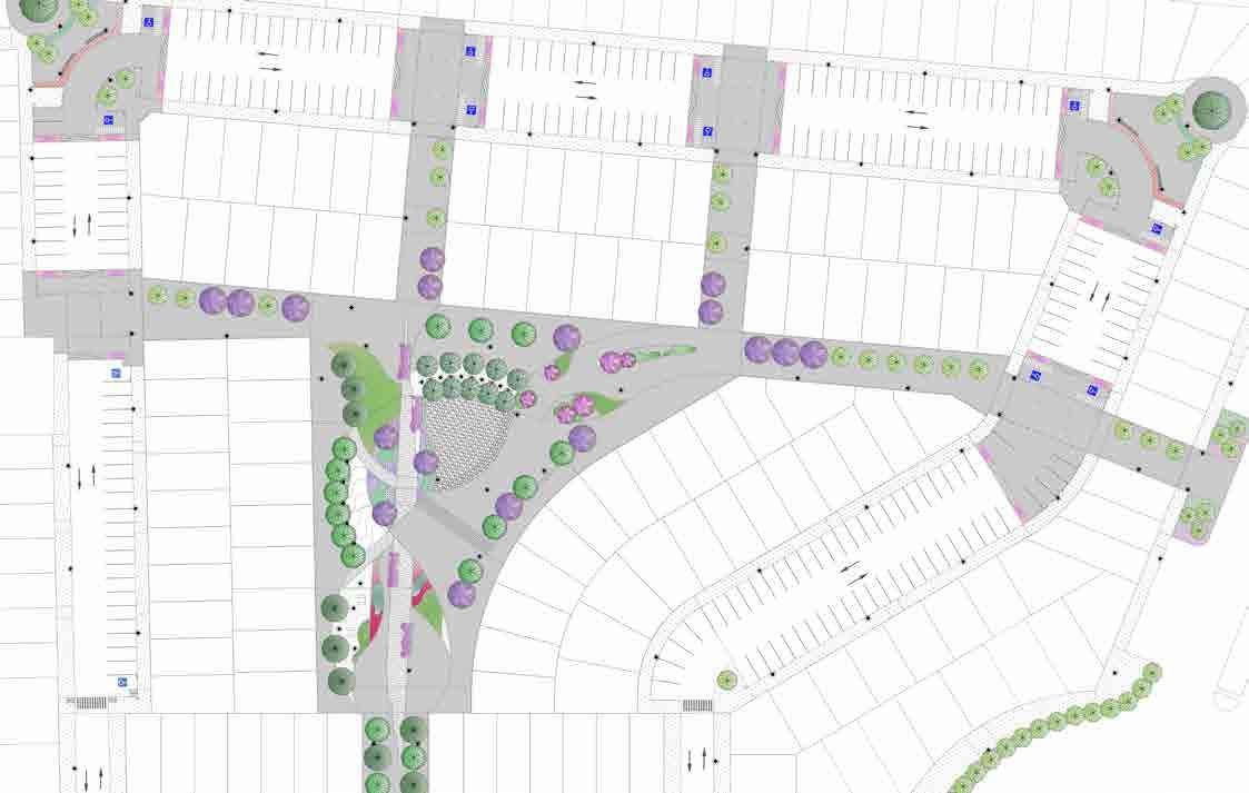The design incorporates key elements such as pedestrian flow, seating areas, and social zones, each receiving tailored treatment to suit its specific function. A central