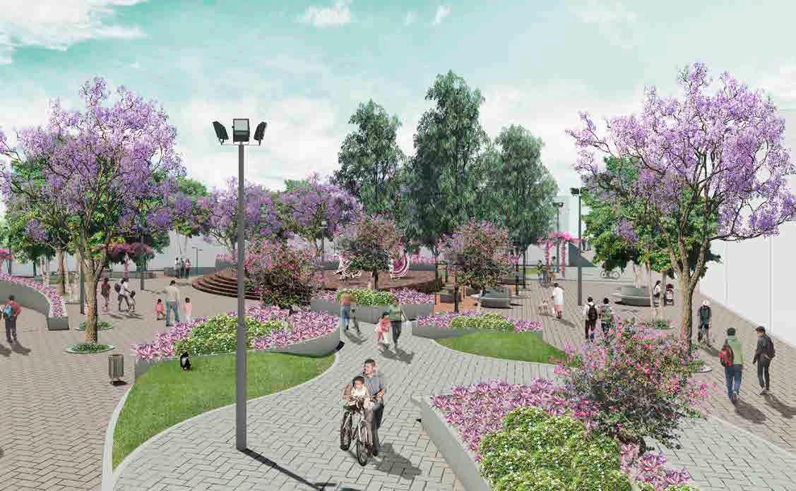 In this project, a central public space was designed to accommodate a diverse range of users. The design prioritizes pedestrians and focuses on creating opportunities for recreational and cultural activities. The urban approach includes the planting of trees along all pedestrian pathways, accentuating the entrance to the main square. Additionally, a primary pedestrian axis was incorporated to connect the southern and northern areas, organizing the space into distinct subspaces.