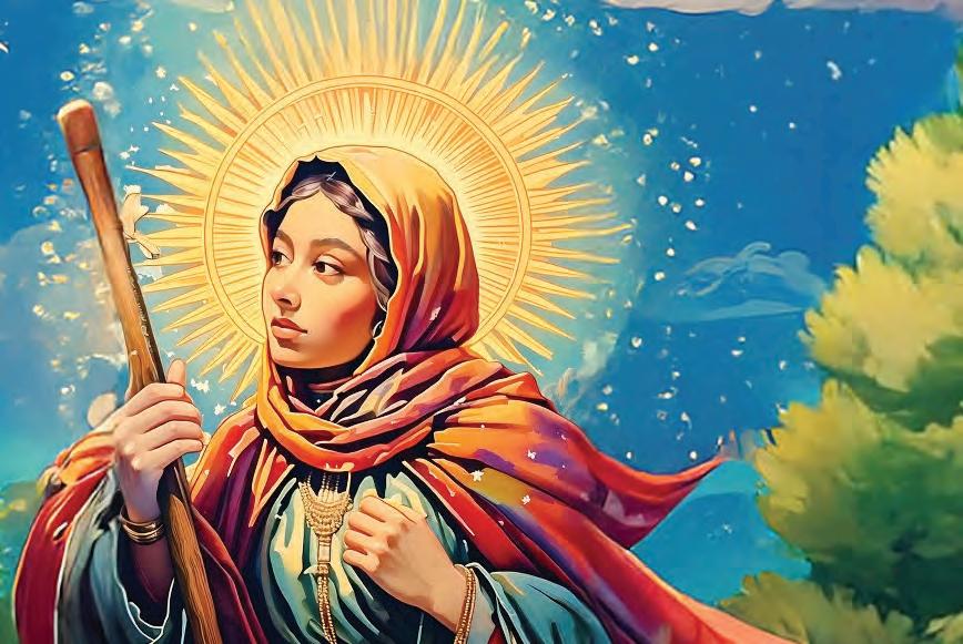 In this issue of the DOME, we celebrate the 500th anniversary of St. Angela Merici’s pilgrimage to Rome, which coincides with the theme of this Jubilee Year, as declared by Pope Francis: Pilgrims of Hope. For our cover, we created an image of St. Angela as an Italian woman (which she was!) on a pilgrimage, walking in nature, staff in hand. The colors and style of the artwork give her the look of a spiritual superhero—calm, yet determined in her quest.