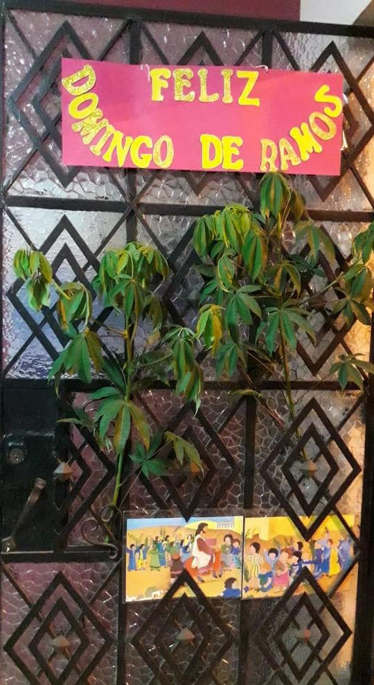 Above: Holy Week in Callao, Peru: Sisters Yuli Oncihuay and Sue Scharfenberger’s door decorated for Palm Sunday. ¡Feliz Domingo de Ramos!