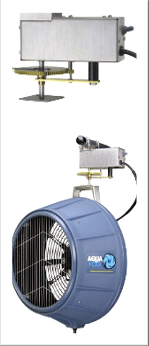 Thiscentrifugalatomizerhasarear-feedbladesystemthatquietly producesbillionsoftiny,fog-likeparticlesthatevaporatequickly.Units hangbyeitherasingleU-boltorauniversalmountingbolt.Thehousing pivotseasilybyhand.