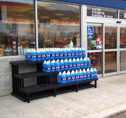 elevating products off the floor in an organized and emphasized way. Standard configurations are available in heights of 12, 18, 24, and 30-inches, with other sizes available upon request.
