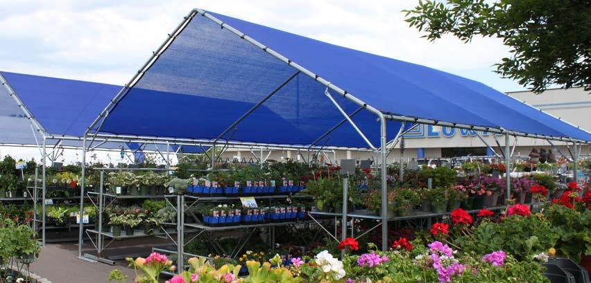 Truss: 2” x 2” square top and bottom chords, galvanized webbing Cover: 30–90% shade cloth