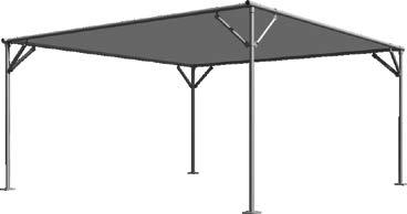 3” x 3” Sq. 12 ga. vertical posts with 7” x 7” base plates in 20’ x 20’ blocks, expansion anchor bolts, 20’ galvanized truss members, knitted shade cloth with taped edges and grommets, 10” canopy ball bungee every 18”, fittings, hardware, and assembly instructions