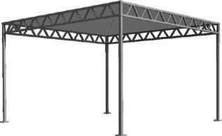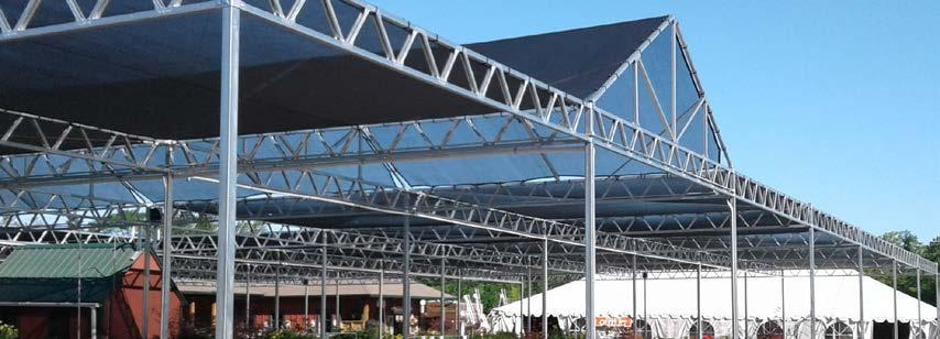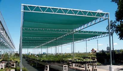 Truss: 2” x 2” square top and bottom chords, galvanized webbing Cover: 30–90% shade cloth