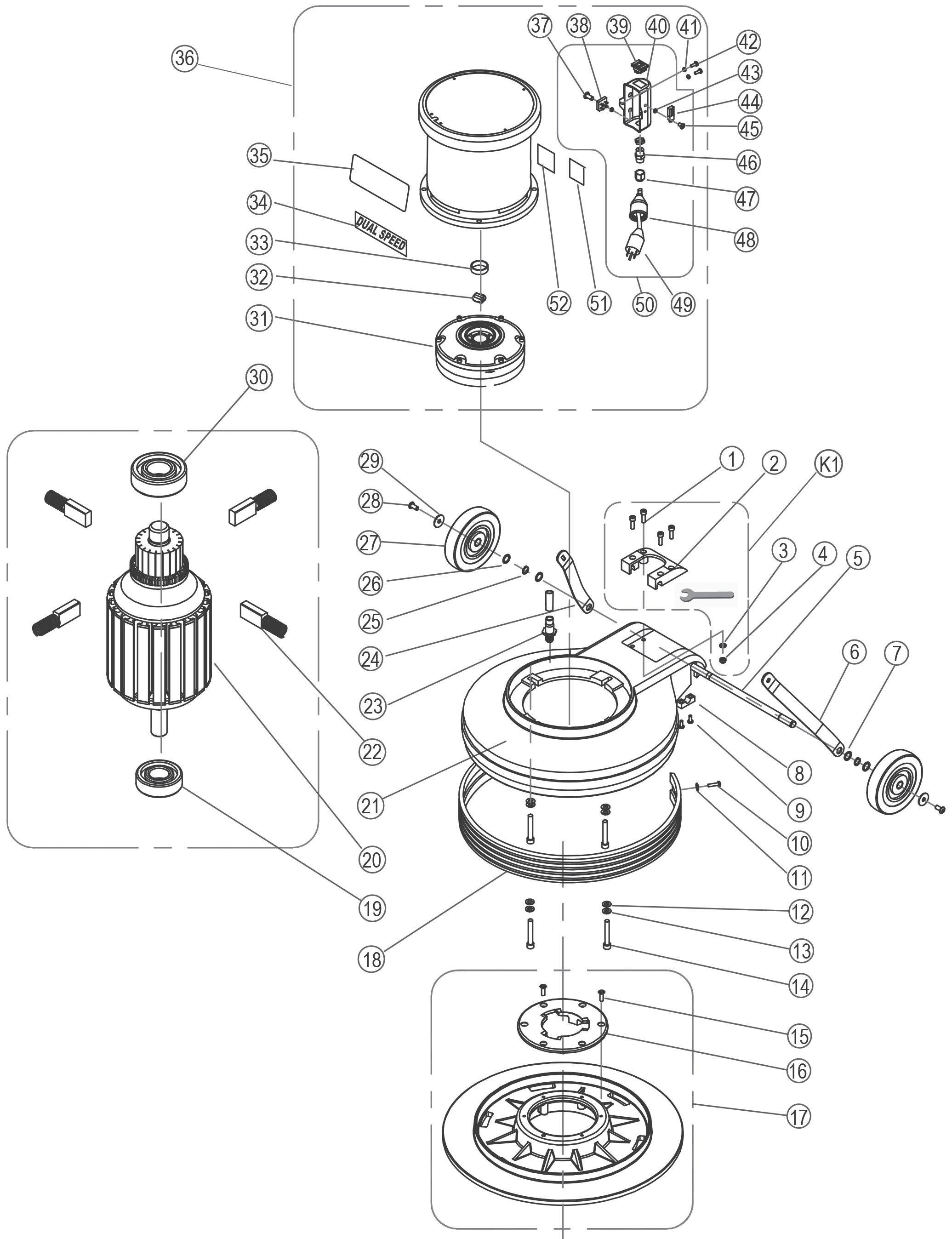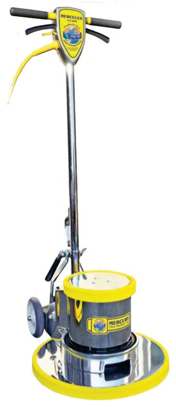 As contractor’s first choice, the Hercules Super Heavy-Duty Floor Machine has a 1.5 HP, 66-frame A/C motor and 175 RPM transmission. Rugged all-metal construction. Order brush and pad driver separately.