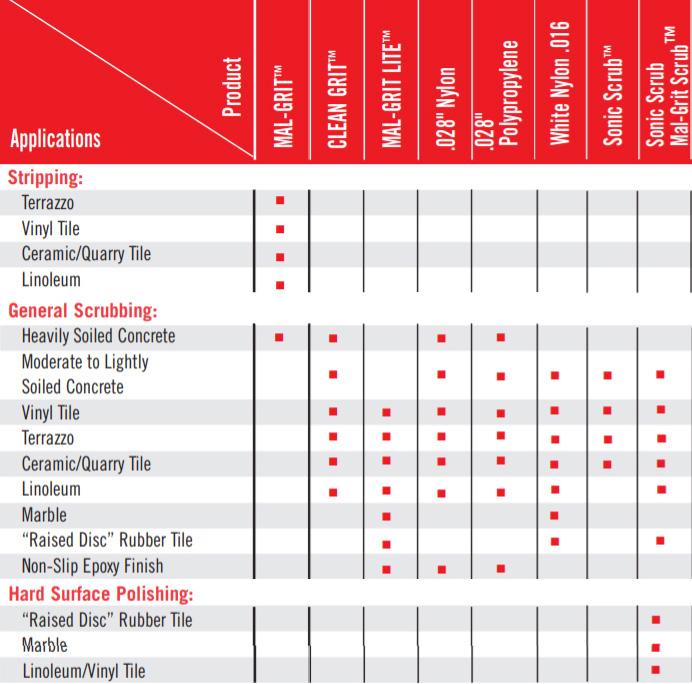 Light duty brush 60.41 1 992-1032 Aggressive duty brush 63.10 1 992-1034 Tile and grout brush 82.50 1 992-1036 Medium duty brush 75.71 1 992-1038 Long bristle brush 75.71 1 992-1040 Baseboard brush 165.09 1 253-1012 Grit stair brush 218.90 1 992-1039 Pad driver 63.10 1 992-1041 Microfiber pad 19.42 1 253-1013 Melamine pad (pkg of 5) 48.04 1 992-1043 Stripping pad (black) (pkg of 10) 29.91 1 992-1044 Scrubbing pad (green) (pkg of 10) 29.91 1 992-1045 Spray buff pad (red) (pkg of 10) 35.89 1 992-1047 Heavy duty scrubber pad (blue) (pkg of 10) 35.89 1 992-1046 Polishing pad (white) (pkg of 10) 29.91 1 253-1014 High performance stripping pad (pkg of 10) 42.56 1 253-1015 Crystalliser pad (pkg of 2) 35.19 1 253-1016 Refurbishing twister pad (white) (pkg of 2) 51.99 1 253-1017 Shine creating twister pad (yellow) (pkg of 2) 51.99 1 253-1017 Shine creating twister pad (yellow) (pkg of 2) 51.99 1 253-1018 Shine and maintain twister pad (green) (pkg of 2) 51.99 1 992-1041 Microfiber pad 19.42 1 992-1046 Polishing pad (white) (pkg of 10) 29.91 1 992-1044 Scrubbing pad (green) (pkg of 10) 29.91 1 992-1045 Spray buff pad (red) (pkg of 10) 35.89 1 992-1039 Pad driver 63.10 1 992-1042 Charger 72.60 1