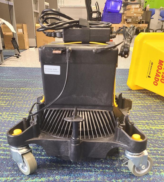 continuous flow of air in 360 degrees and up to 15 feet in diameter. While drying the floor, the Hurricone also warns pedestrians of a potential slip hazard using standard 36 inch floor cones.