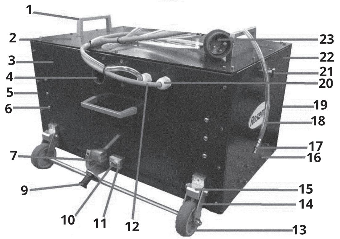 • Includes a smooth-glide slide-out, molded carrying handle and double ball-bearing urethane wheels for easy machine transport.