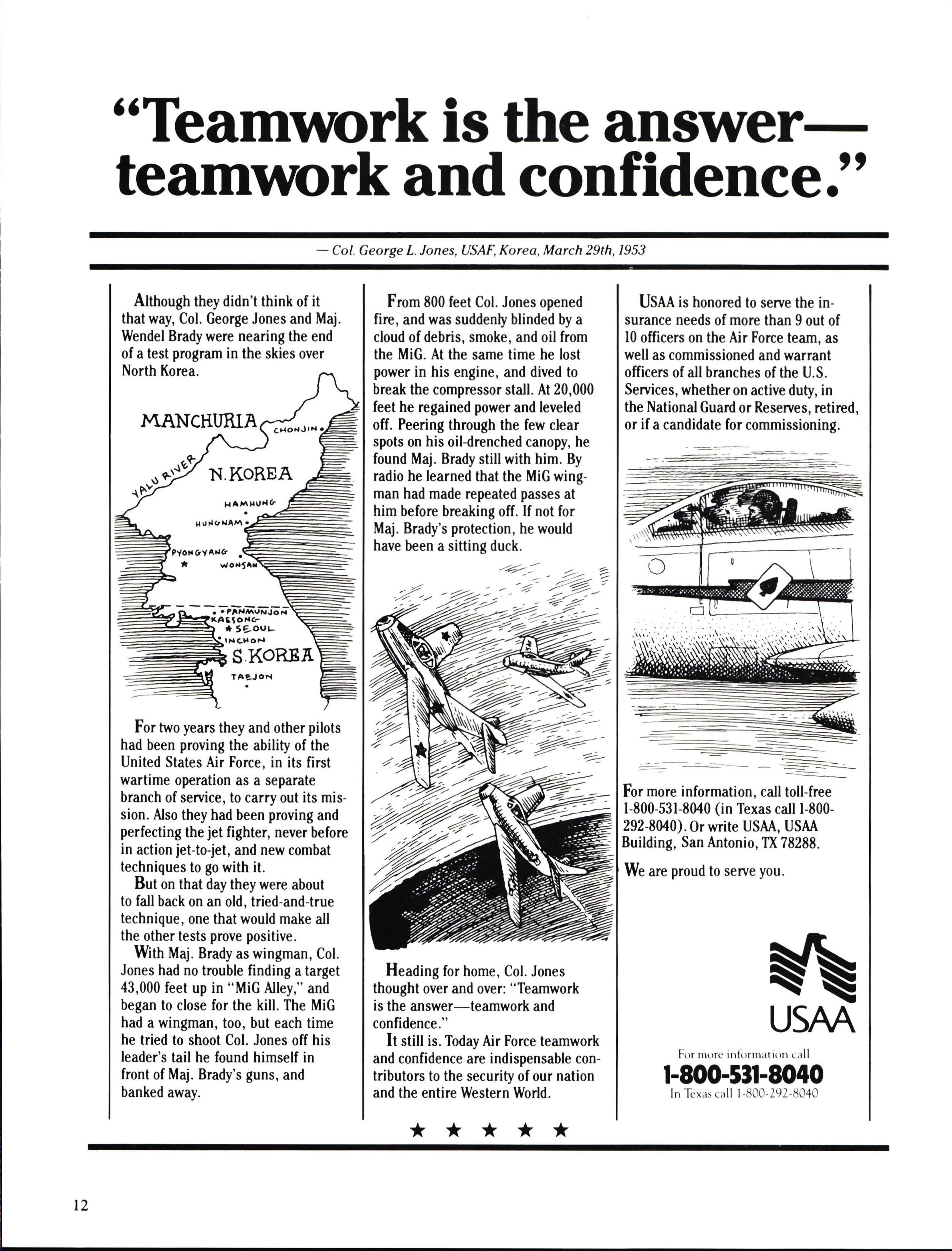2 COLORADO SPRINGS CUSTOM HOMES SunBurst Homes Specializing in Passive Solar Chuck Schwers General Contractor Call collect: (303) 594-9530/594-9272 or write: Sunburst Homes 10 Arequa Ridge Dr. Colorado Springs, Colo. 80919 Do you have orders to Norfolk, Va., or the Hampton Roads area? For a free information packet, write or call collect: Bill Stevens, Capt., USN (Ret) USNA, ’55 Goodman, Segar, Hogan Residential Sales Corporation 1072 Laskin Road Virginia Beach, VA 23451 (Office) (804) 422-9700 (Evenings) (804) 481-1699 We sell a house every two hours! SWlfff smjlm FROM THE BROOME’S CLOSET When you do 57 art shows all over the country in 3 years you’re bound to nick a few borders We did! Save on these slightly damaged limited editions. Retail values from $75.00 to $115.00 each. ★ ORDER TODAY THESE WON’T LAST LONG ★ Colo Residents add 3% sales tax CHOOSE FROM THESE FULL COLOR PRINTS “Thunderbirds” T-38, Cessna T-37, Boeing 737, Convair 580, F-106, EB-57/F4E, T-6D “Eagle View” Balloon and Class of ’79 B-1. We recommend calling to reserve your choices. Order extras for gift giving next Christmas. VISA, MasterCard accepted. Offer limited to stock on hand. Add $7.50 shipping/insurance. Very slight damage on print borders call or write today. ALSO AVAILABLE AT Vi PRICE All Class Prints 1981 - 1984 “Starlite“ Editions & 1980 Talon Take Off F-15’s, F-16’s & T-38’s $150.00 ea. Mint Condition Includes Blacklight When in COS come & visit me call for appt. ALSO ALL ORIGINAL COMMISSIONS Vz PRICE FROM $300.00 FROM THE STUDIO OF ^c/C ^Bk.OOMe 2809 OLD BROADMOOR ROAD COLORADO SPRINGS. CO 80906 303 - 576 - 1990/1977