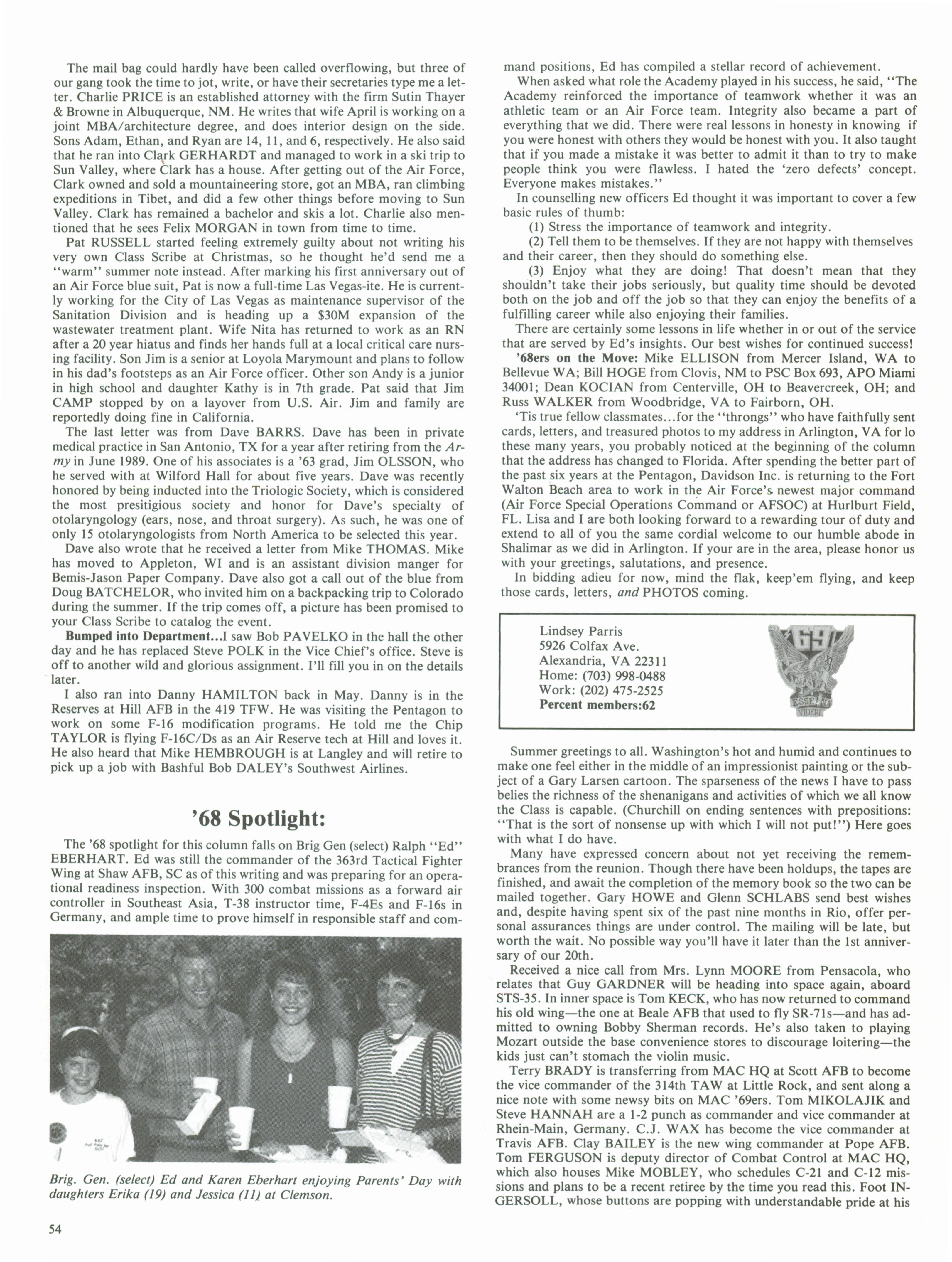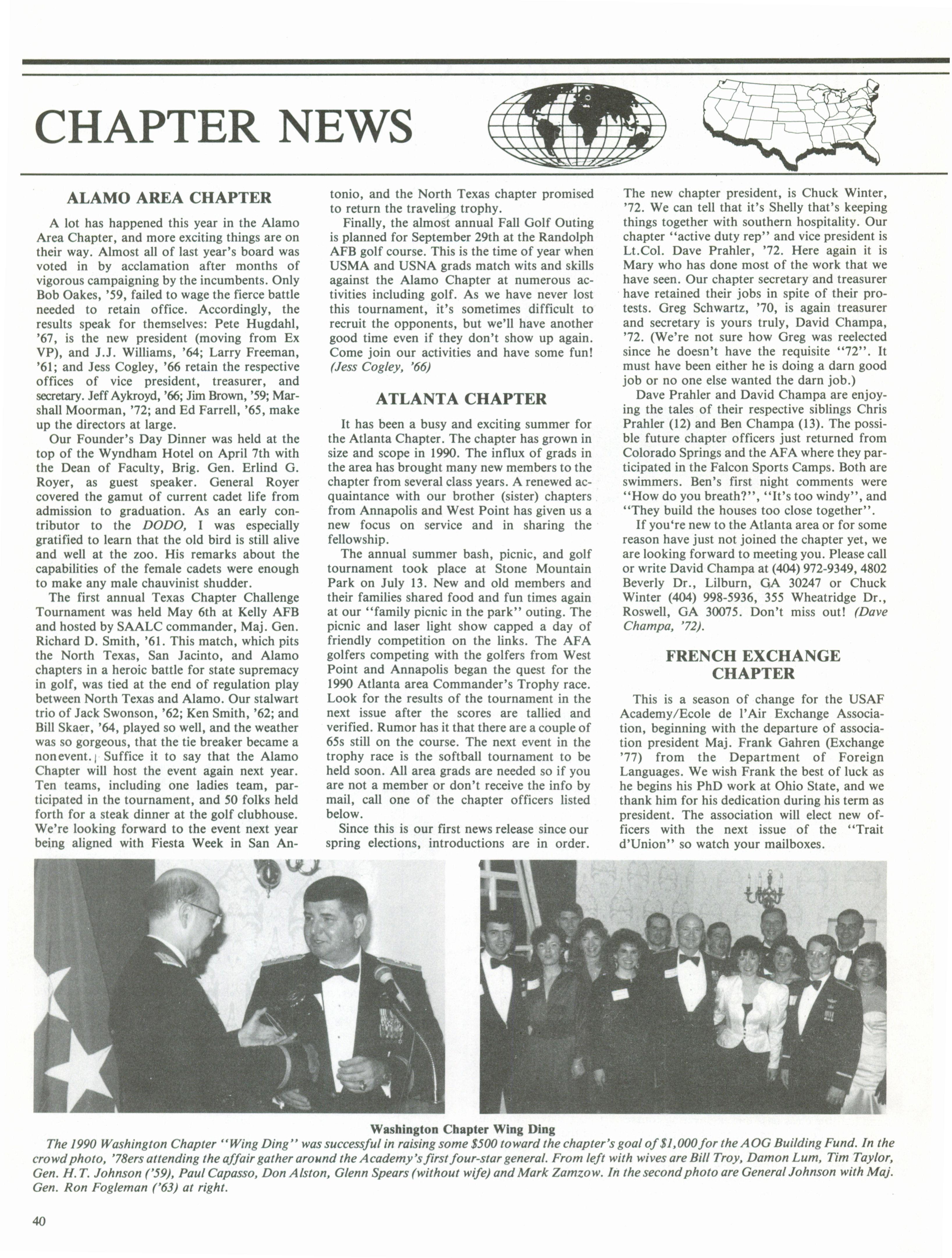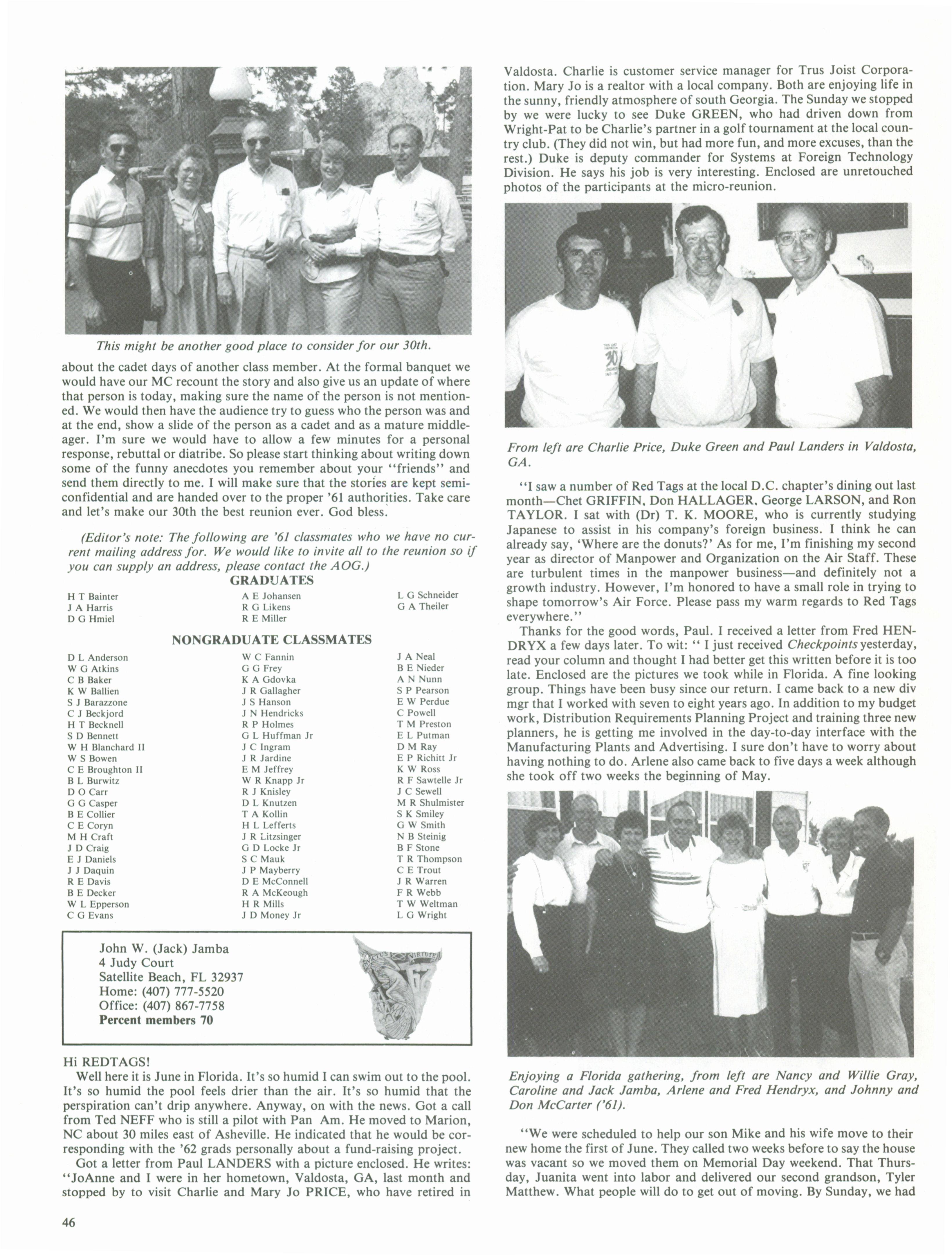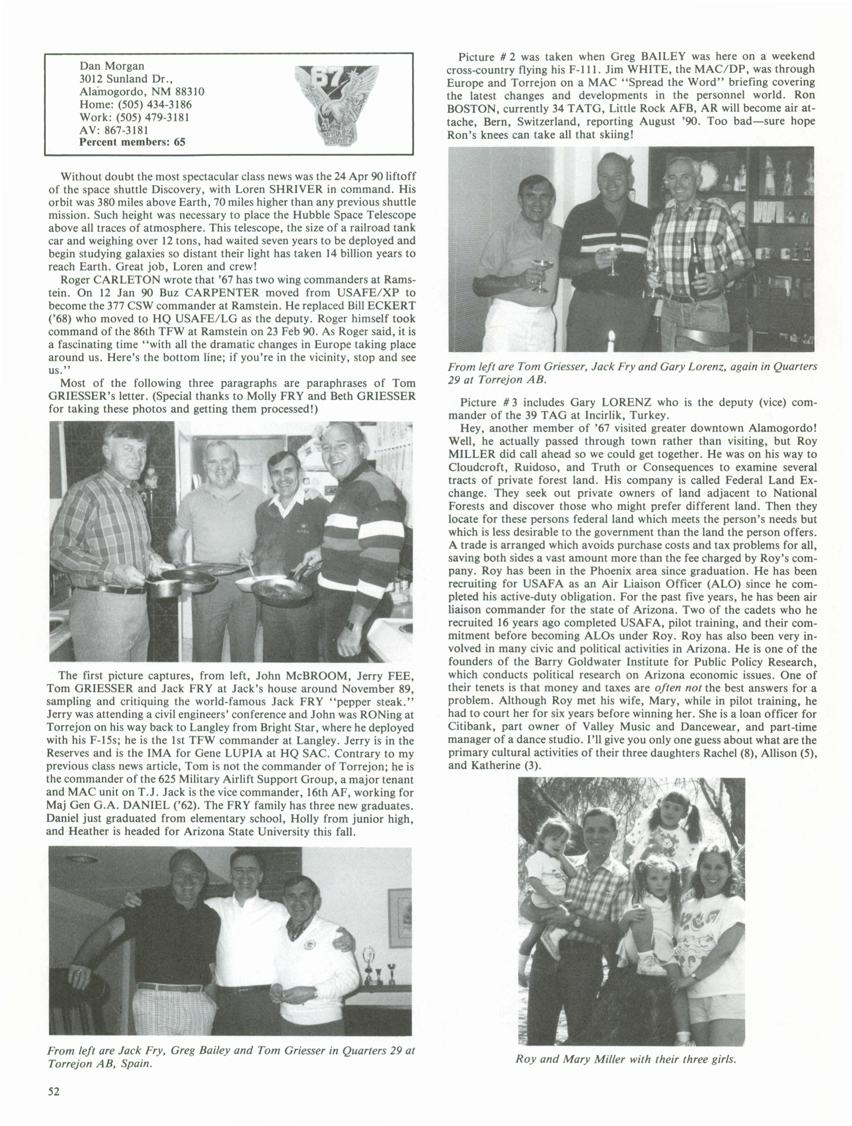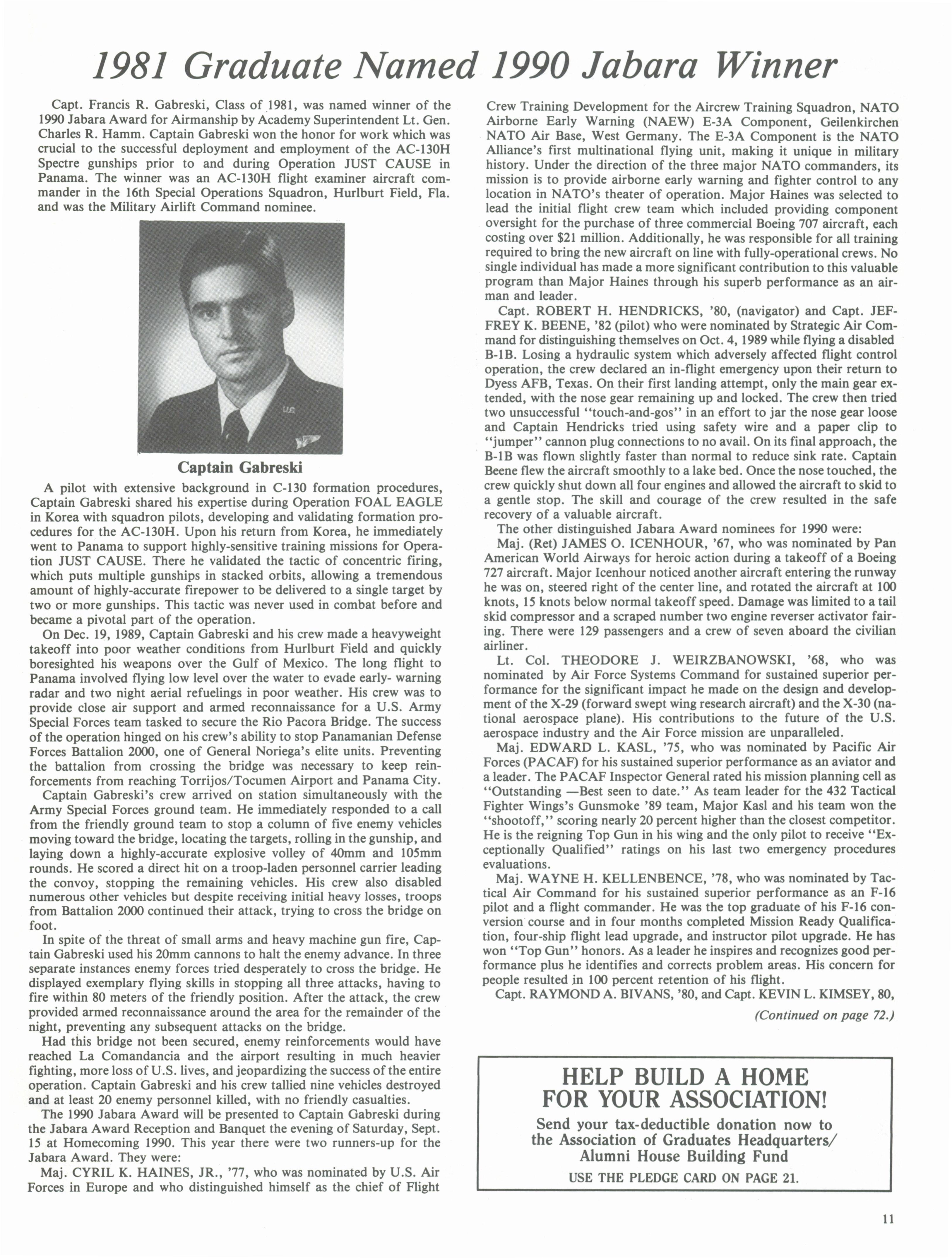 In closing, I would like to say that the class of 90-14 is doing fine. I know you all probably want details, but I will spare you this issue. I would like someone in each class at each pilot training base to PLEASE (Jabara: Continuedfrom page 11.)