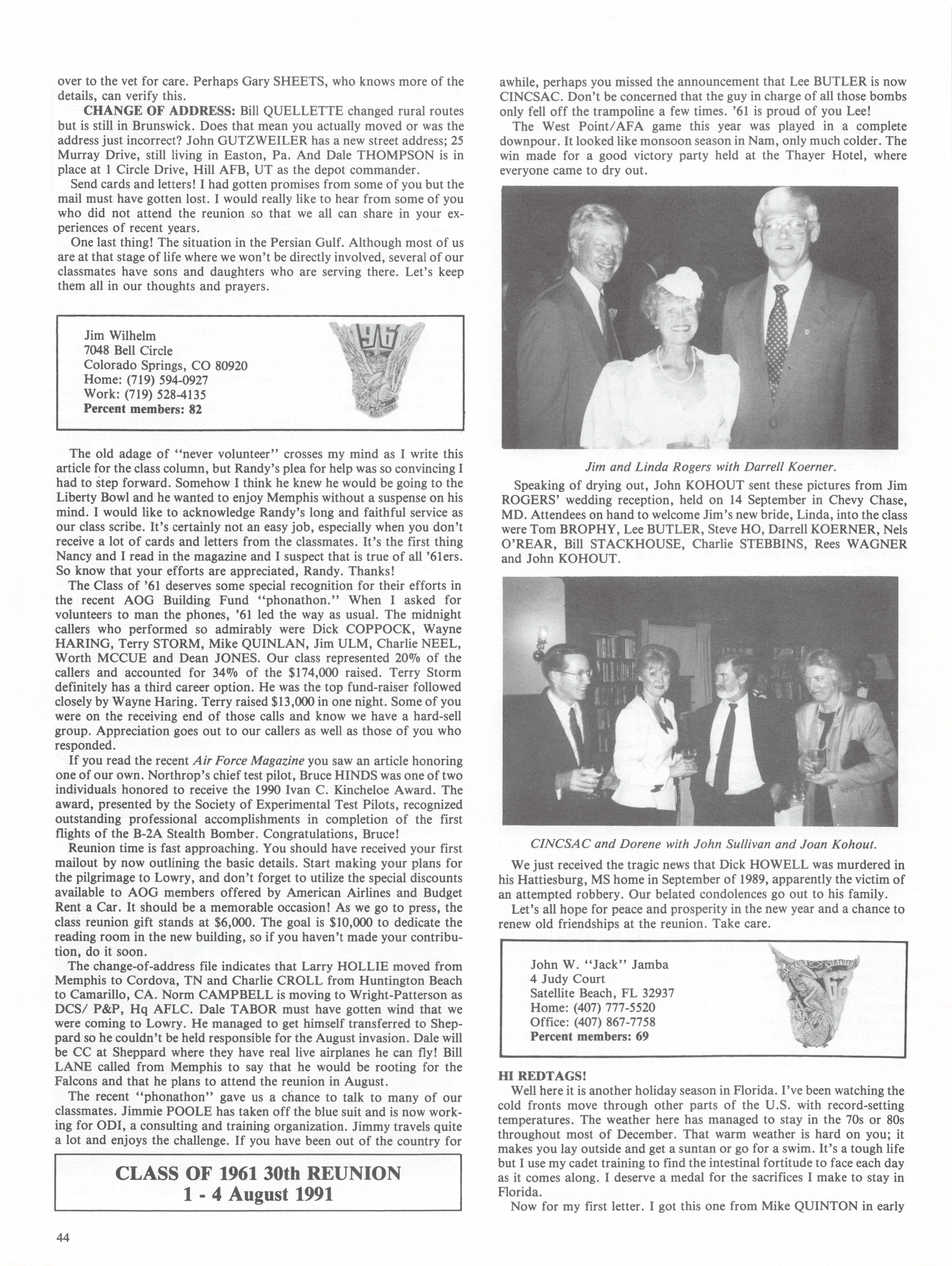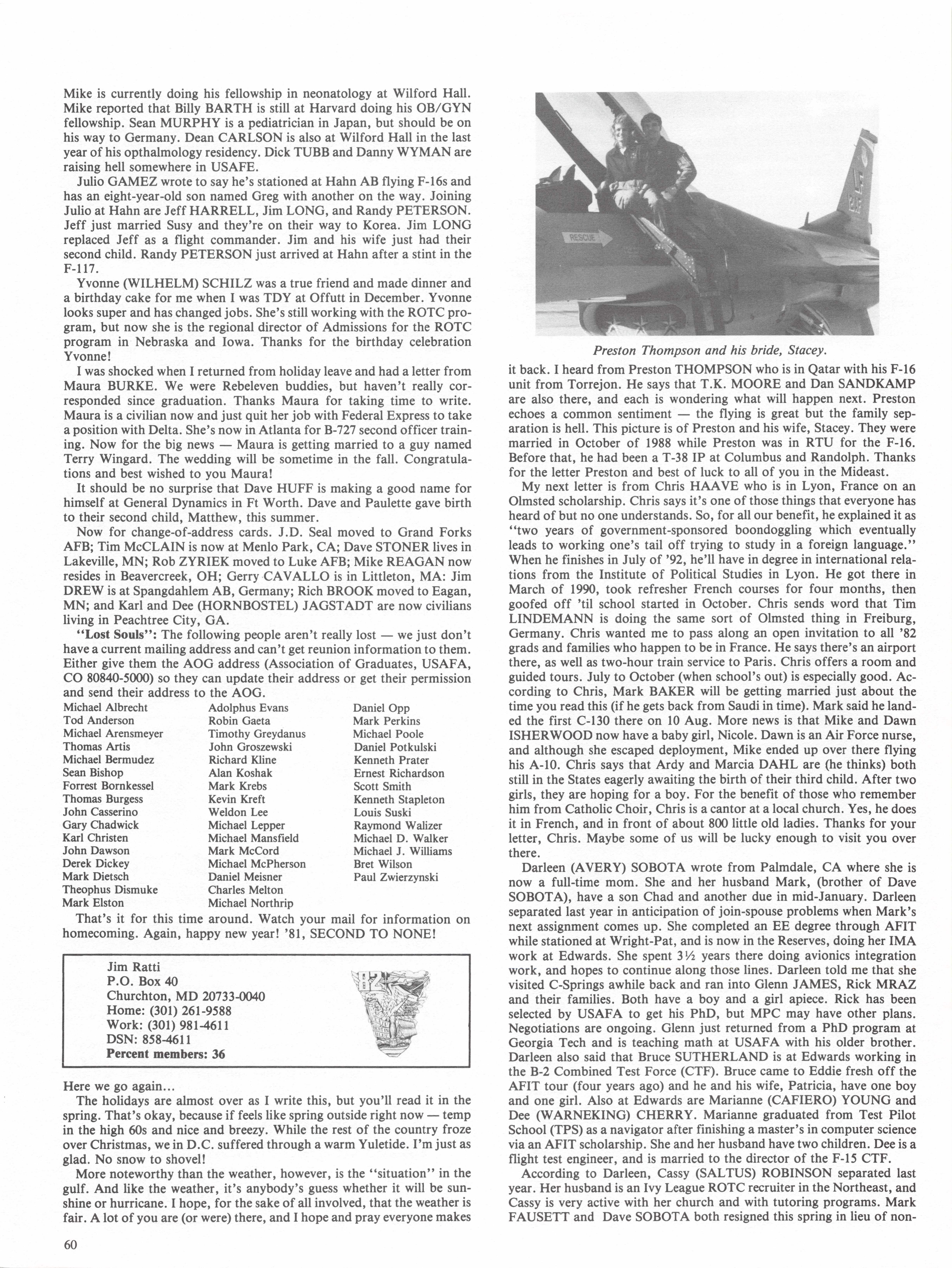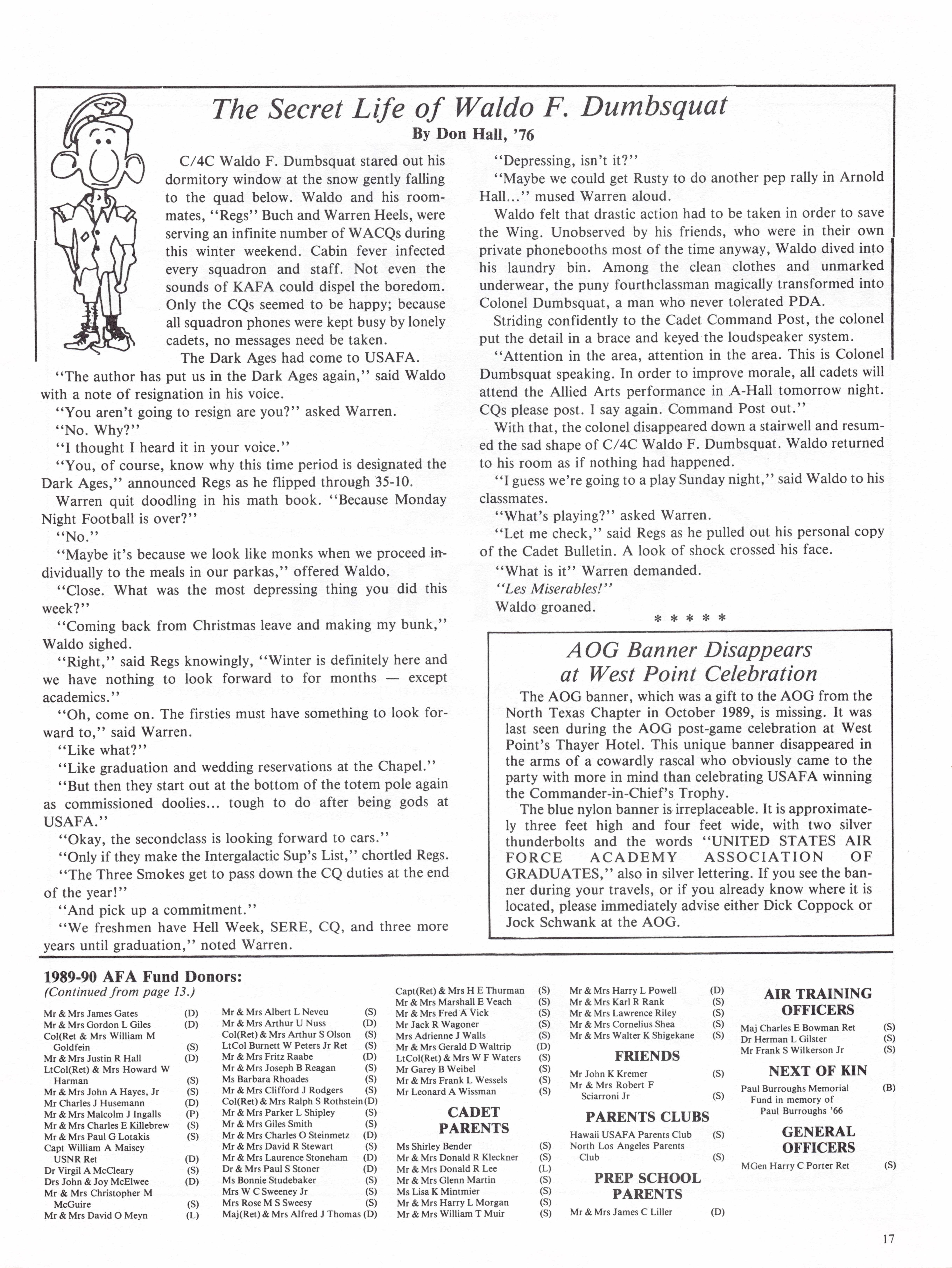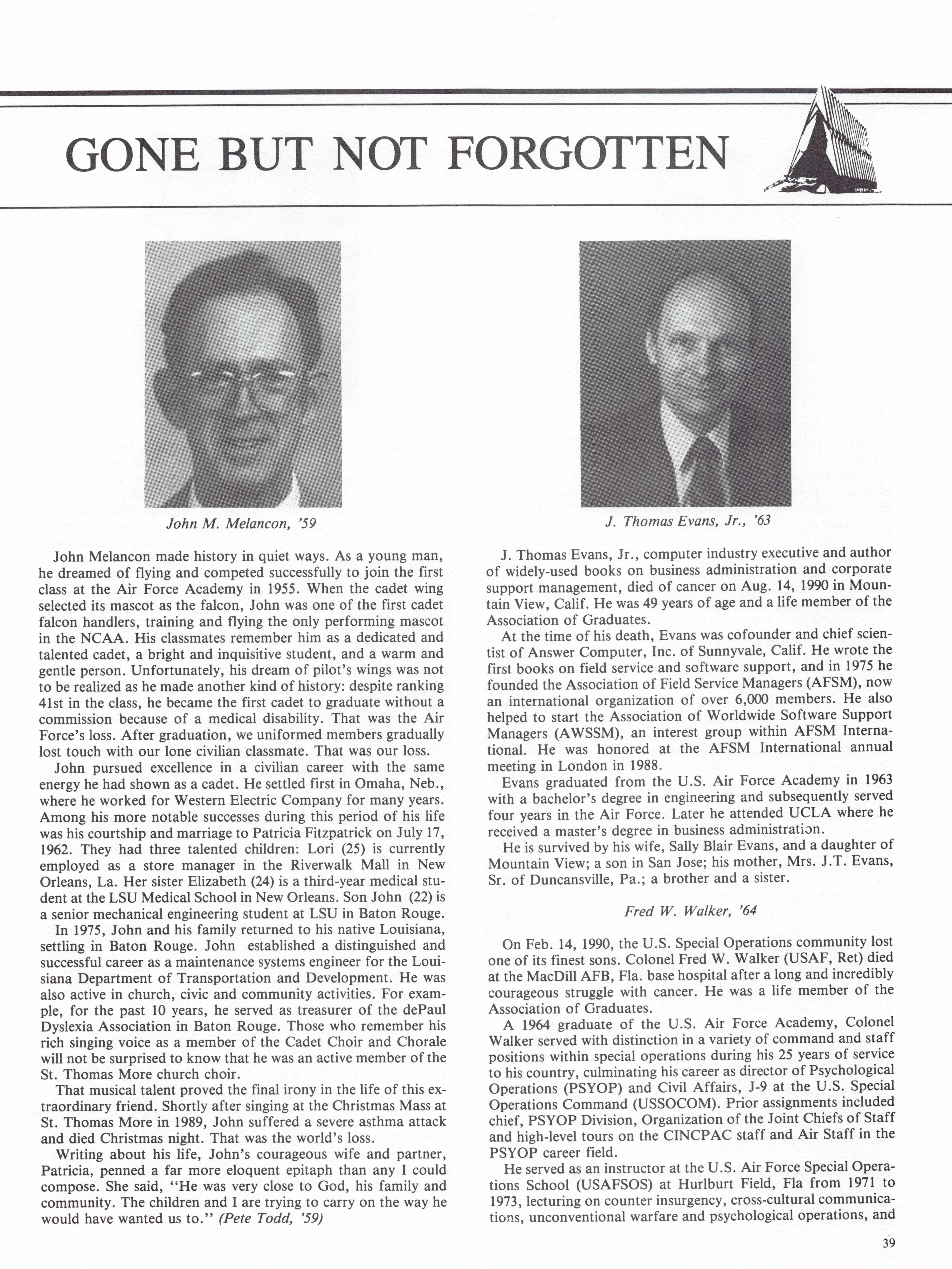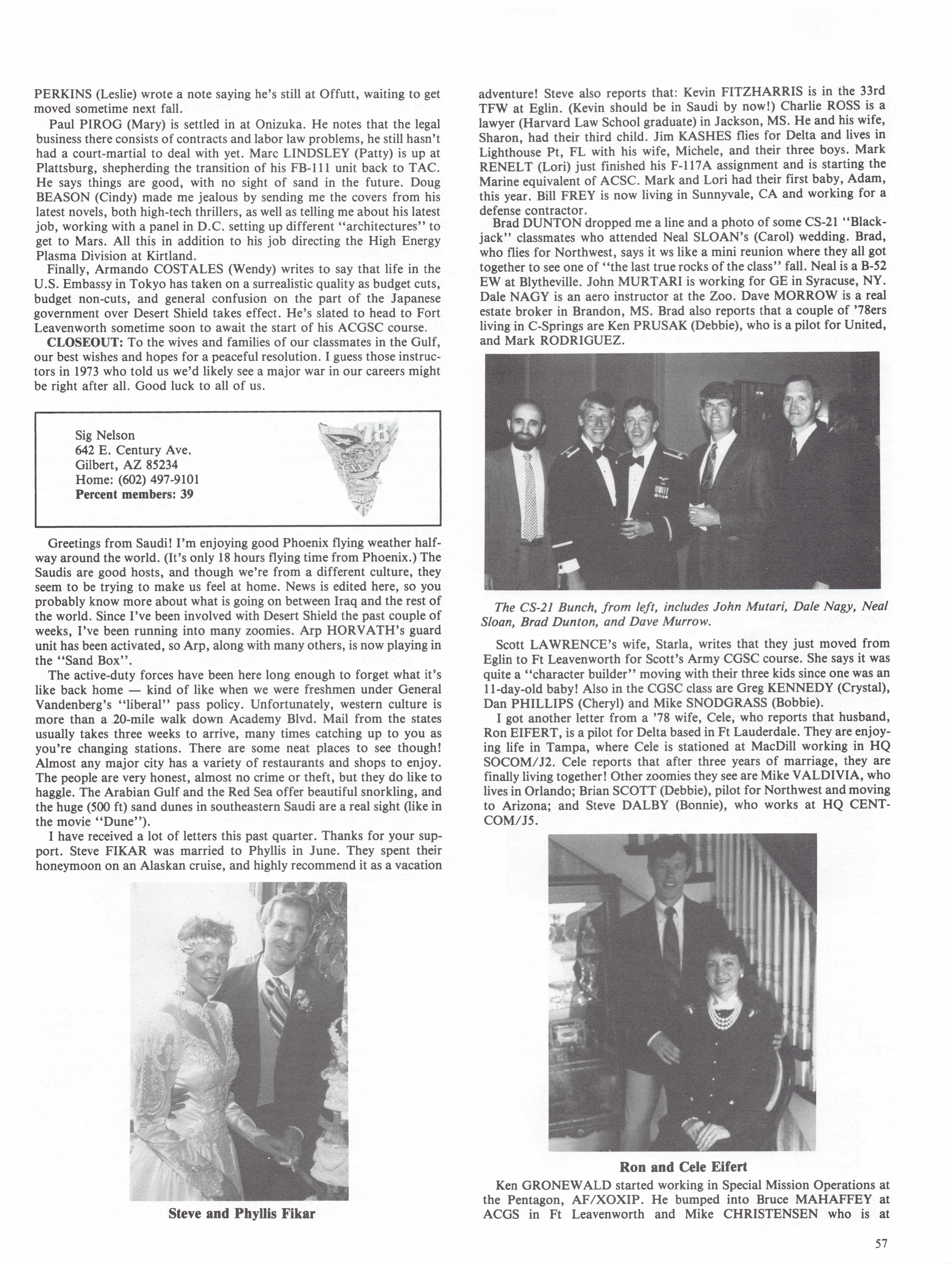 CHECKPOINTS is published in February, May, August and November by the Association of Graduates, USAF Academy, Colo. 80840-66(K) (Phone: 719-472-2067). It is provided as part of an annual membership package which costs $25. Second-class postage paid at the USAF Academy, Colo. Opinions expressed in this magazine are those of the authors. They do not necessarily reflect the opinions, policy or attitude of the Association of Graduates, its officers or the editorial staff. The appearance of advertisements in this publication does not constitute an endorse¬ ment by the Association of Graduates of the products or services advertised. Copyright, Association of Graduates of the United States Air Force Academy, Winter 1990-1991. POSTMASTER: Send Form 3579 to Checkpoints, Association of Graduates, USAF Academy, Colo. 80840-6600. USPC 898-080
