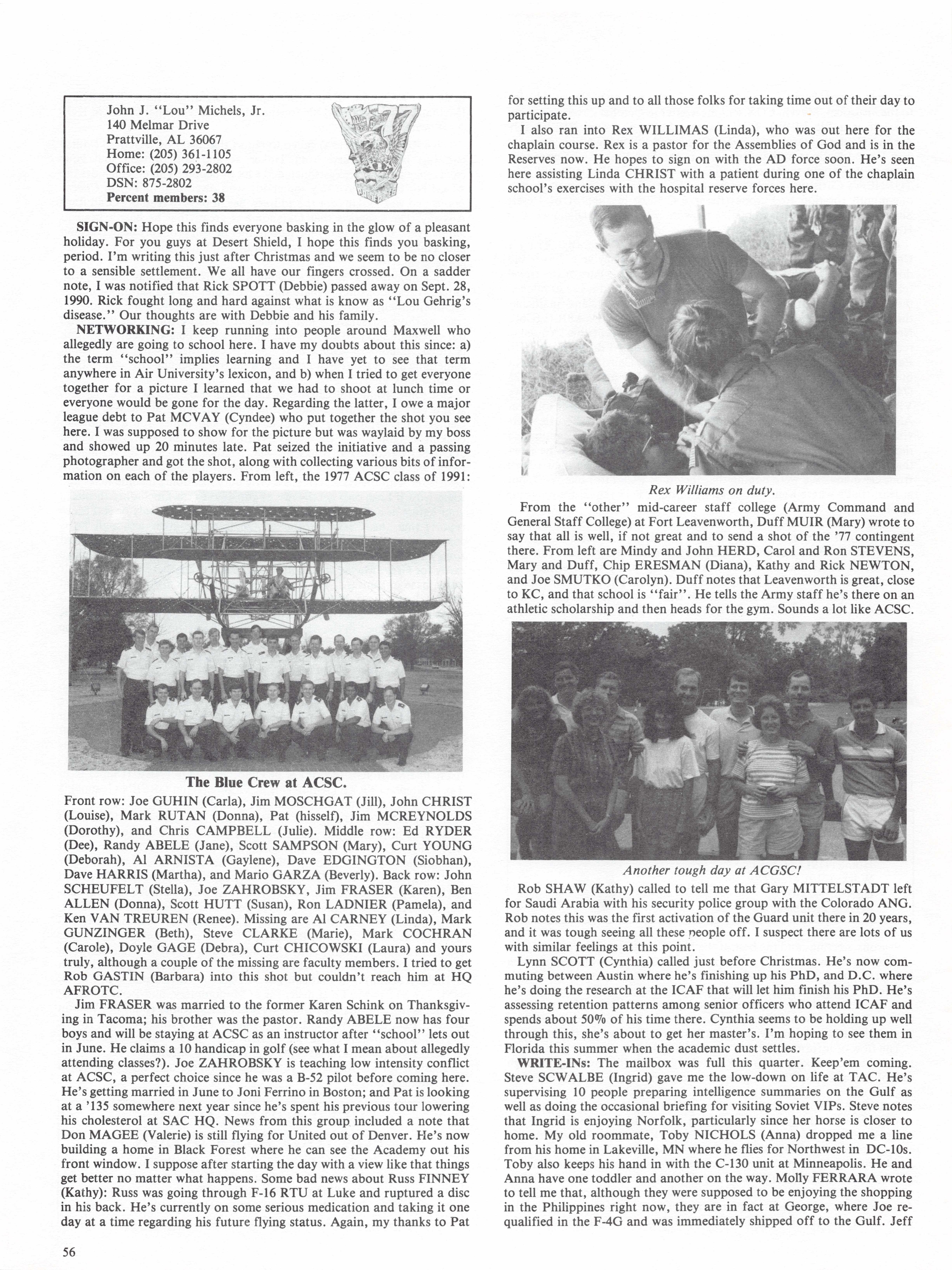 r 1 V/Sj^ MasterCard J L Catalog available for $5 from AIR COMMAND AND STAFF COLLEGE FOUNDATION, Bldg. 1402, Maxwell AFB, AL 36112 For information on 1991 GATHERING OF EAGLES send stamped, self-addressed legal sized envelope.