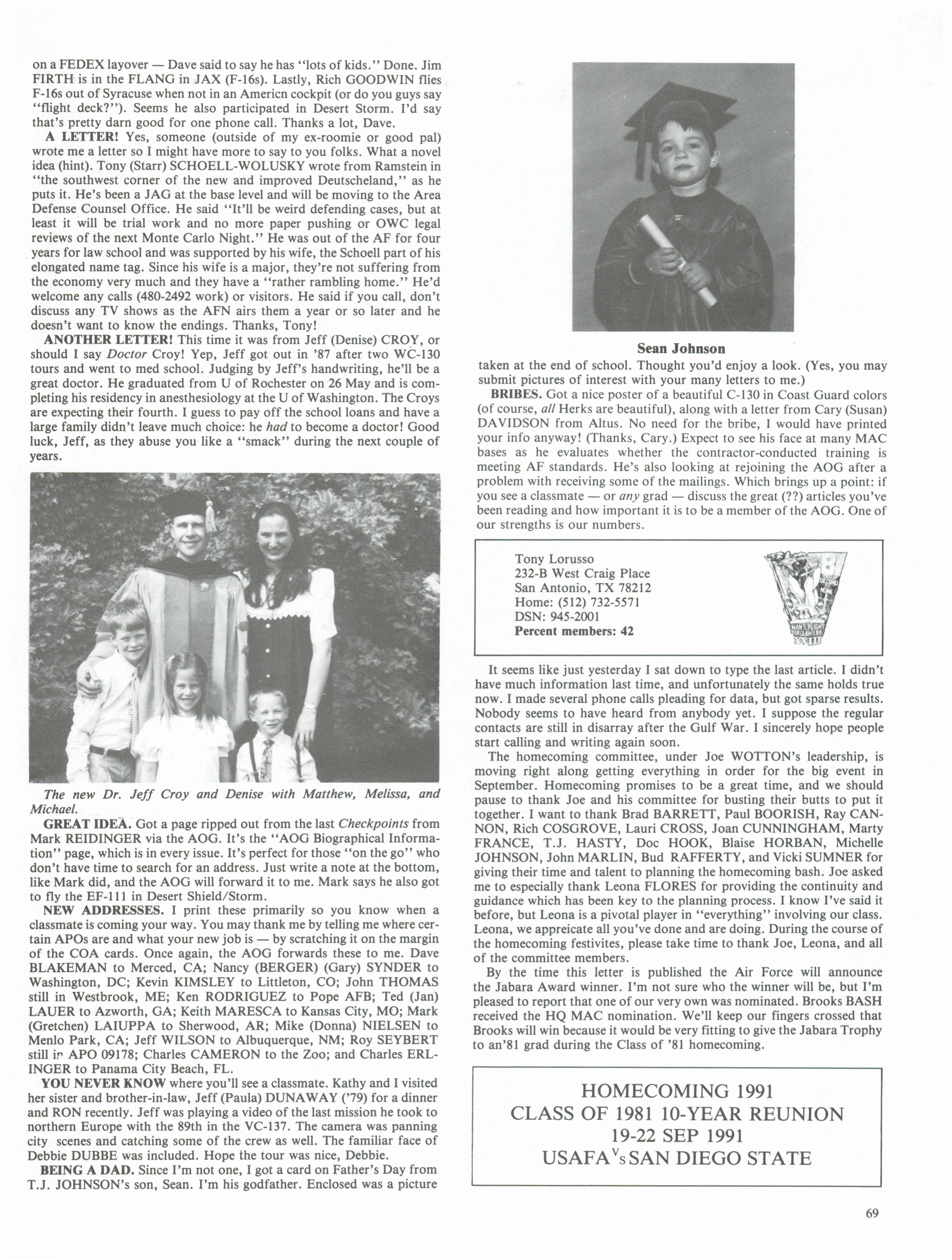 CHECKPOINTS (ISSN 0274-7391) (USPS 898-080) is published quarterly in February, May, August and November by the Association of Graduates, U.S. Air Force Academy, Colo. 80840-6600. (Phone: 719-472-2067. FAX: 719-472-4194.) It is provided as part of a $25 subscription package of which the magazine accounts for $10. Single copies of CHECKPOINTS for members $2.50, for nonmembers $3.50. Second-class postage paid at the U.S. Air Force Academy, Colo. POSTMASTER: Send Form 3579 to CHECKPOINTS, Association of Graduates, USAF Academy, Colo. 80840-6600.
